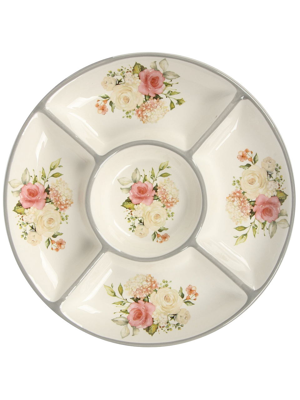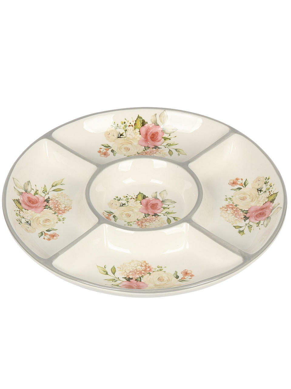 Менажница керамика 26 см, 5 секций, Prima Collection Белла Анна — стильная сервировка для дома и дачи: удобно разделять закуски, экономить место, выгодно купить недорого.