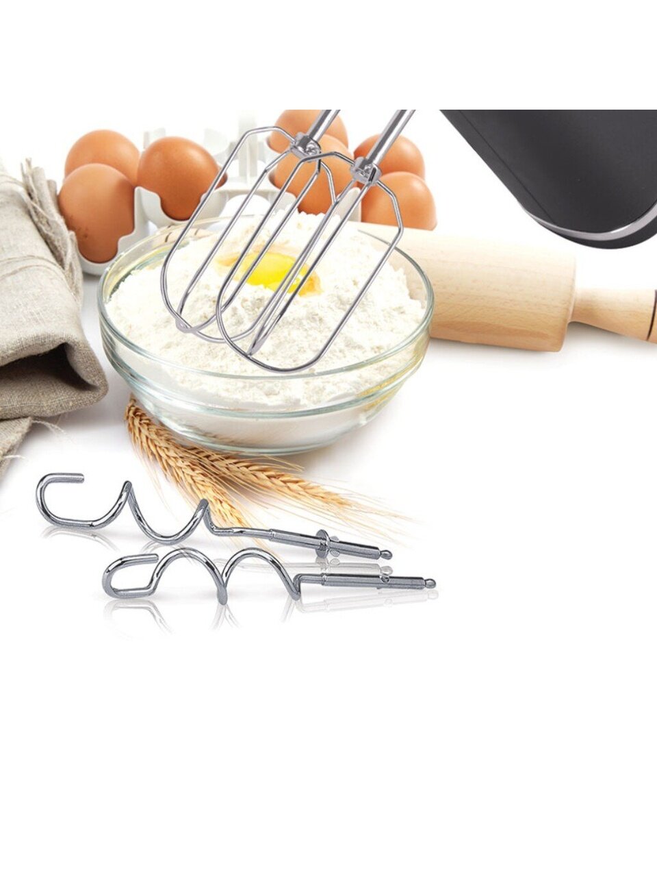 Миксер Polaris PHM 5014 поставляется в комплекте с венчиками для взбивания кремов и яиц, а также со специальными приспособлениями для замешивания густого теста. Прибор подходит для выполнения любых работ – в нём предусмотрено пять скоростей вращения мотора, а также турбо-режим, кратковременно повышающий мощность.