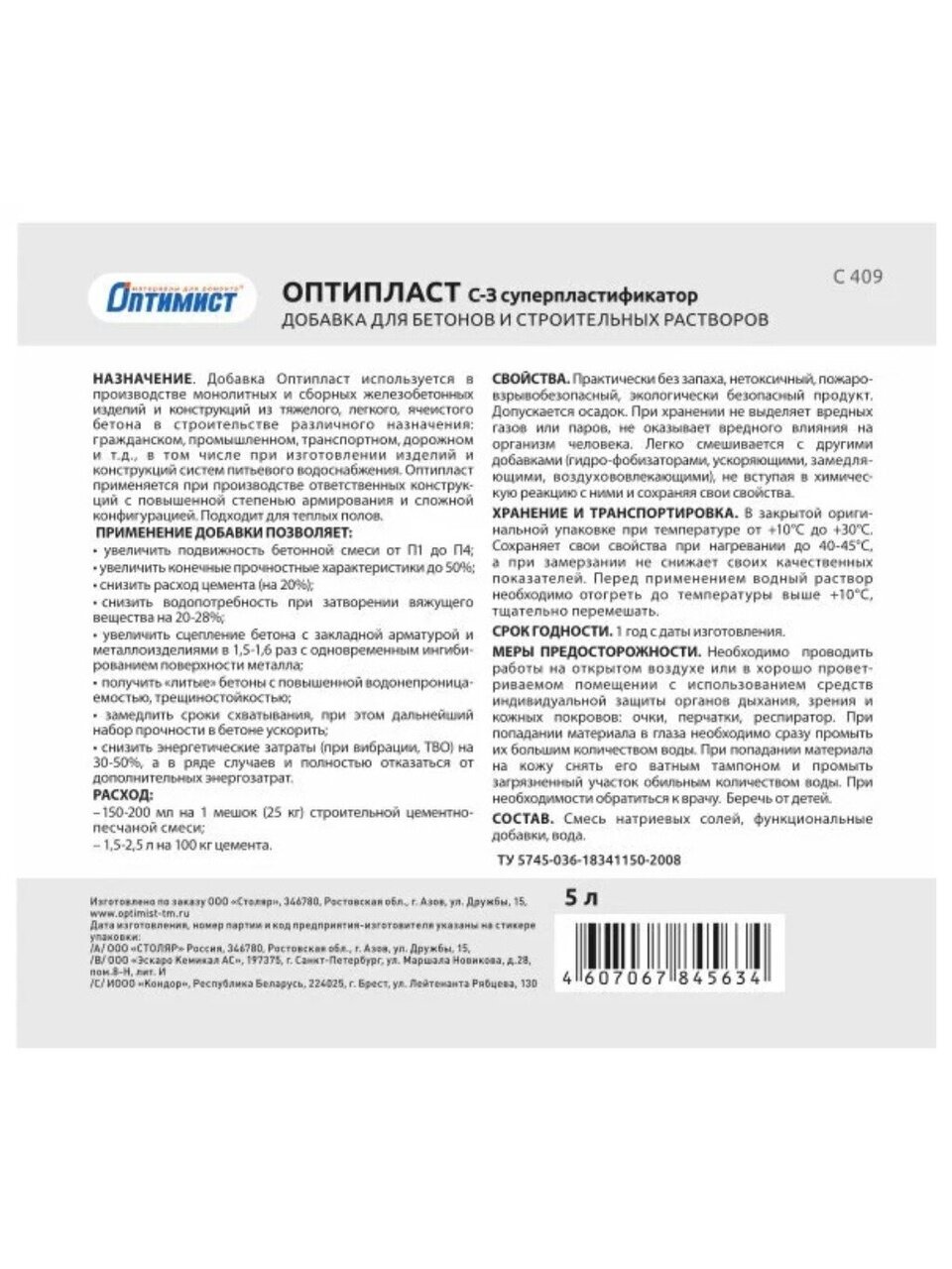 Вы можете приобрести «Пластификатор Оптимист, Оптипласт С 409, 5 л» и другие товары в нашем интернет-магазине в Железногорске по низким ценам и с бесплатным самовывозом.