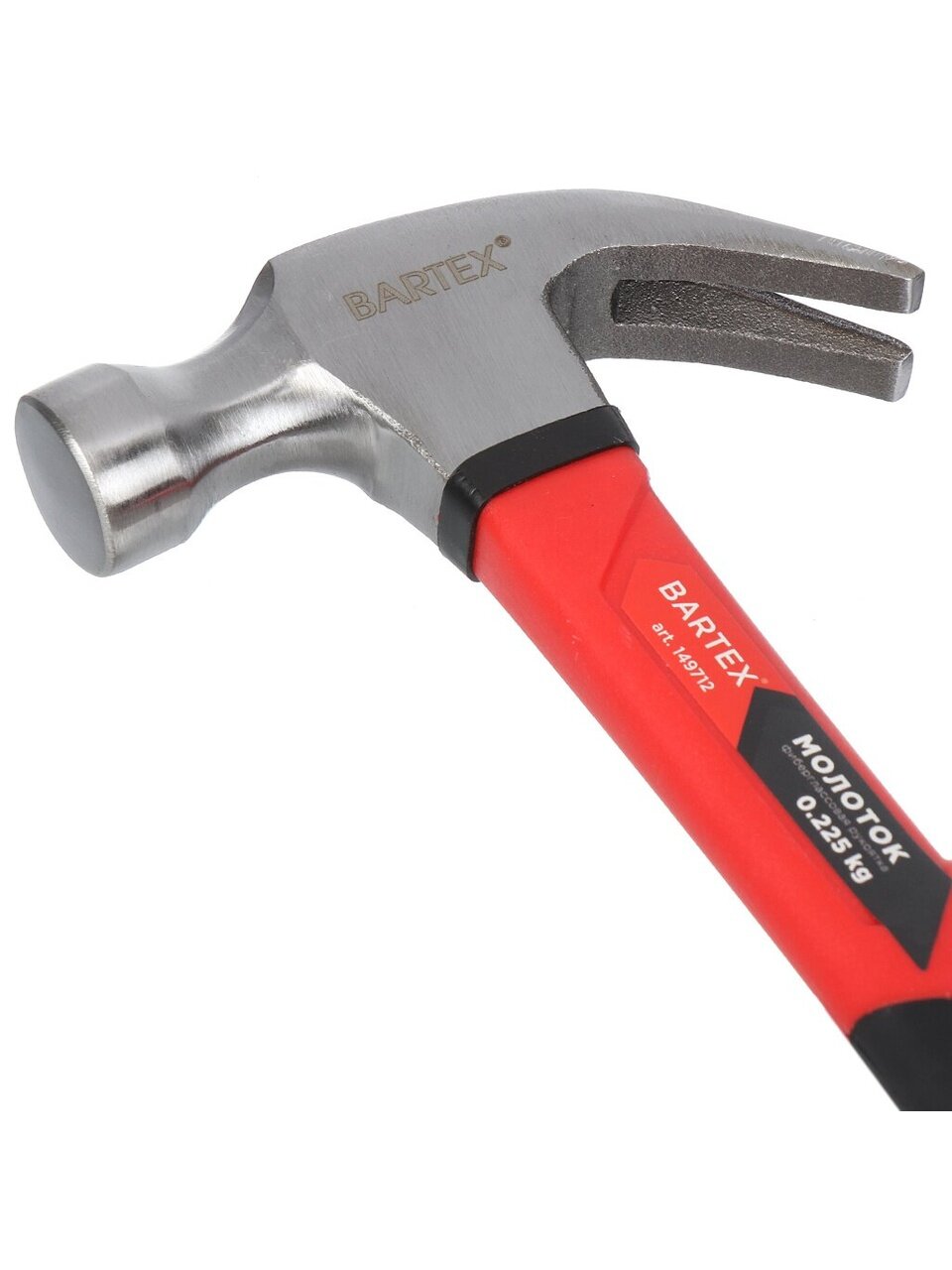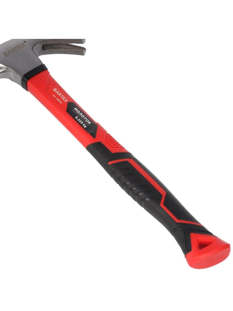 Молоток — один из самых распространенных ударных инструментов. Боек молотка Bartex B0013N с одной стороны имеет плоскую ударную поверхность, с другой — уплощенное загнутое основание с прорезью для извлечения гвоздей. Фиберглассовая рукоятка обеспечивает удобный захват инструмента и способствует эффективному гашению вибрации при ударе.