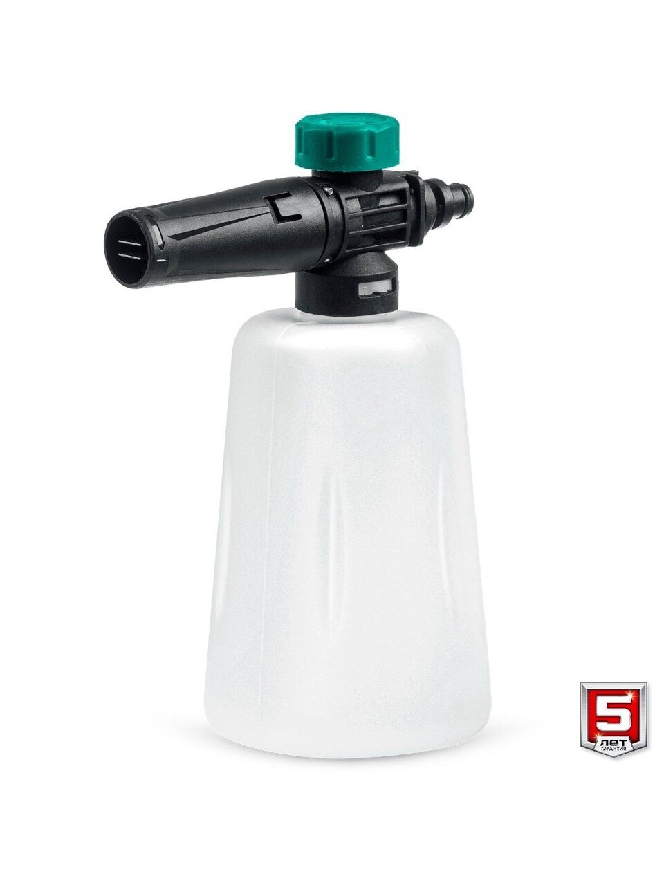 - В комплекте есть резервуар с регулятором подачи пены для предварительной обработки моющим средством.