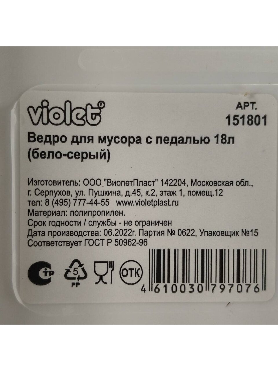 Вы можете приобрести «Контейнер для мусора пластик, 18 л, круглый, педаль, плавающая крышка, белый, серый, Violet, 151801» и другие товары в нашем интернет-магазине в Краснодаре по низким ценам и с бесплатным самовывозом.