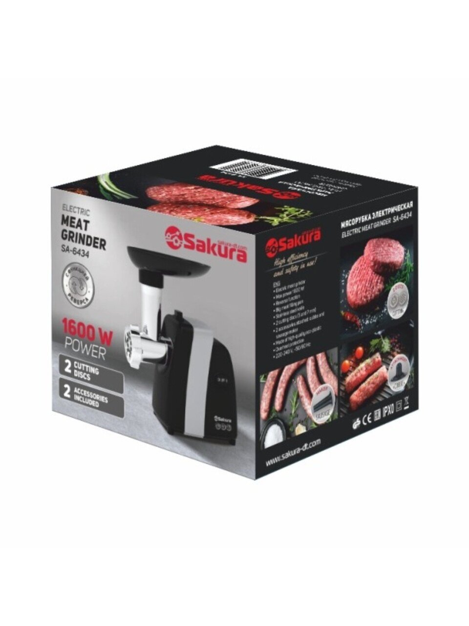 Вы можете приобрести «Мясорубка электрическая Sakura, SA-6434, 1600 Вт, реверс, 1.2 кг/мин, пластик, 2 насадки» и другие товары в нашем интернет-магазине в Астрахани по низким ценам и с бесплатным самовывозом.