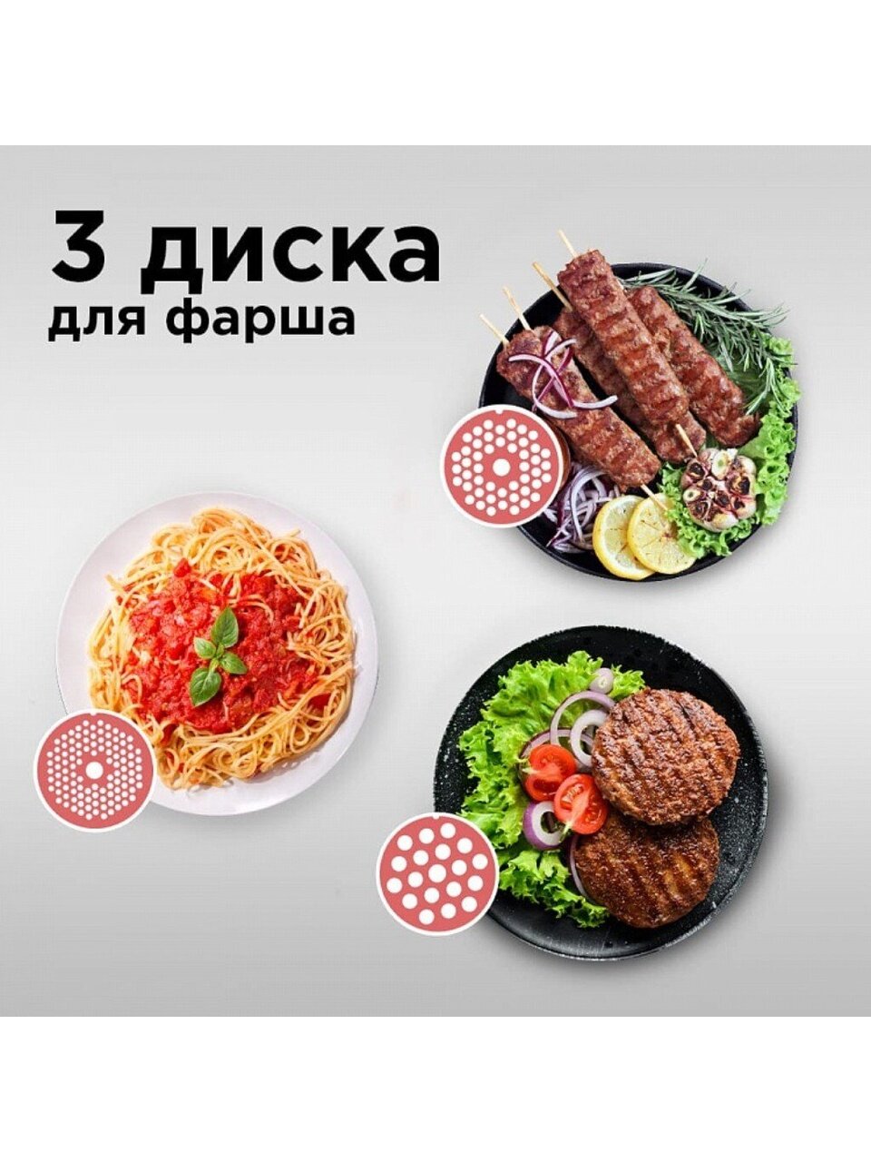 Эта мясорубка не только функциональна, но и безопасна в использовании. Защита двигателя от перегрузки предотвращает поломки, а защита от перегрева гарантирует длительную работу без сбоев. Удобный отсек для хранения насадок позволяет держать все необходимые аксессуары под рукой и экономить место на кухне.