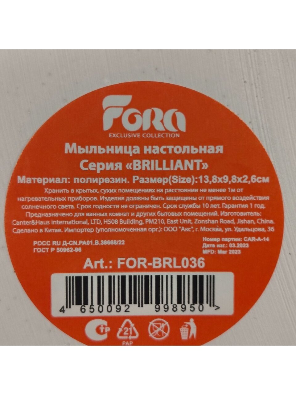 Вы можете приобрести «Мыльница настольная, Fora, Brilliant, полирезина, FOR-BRL036» и другие товары в нашем интернет-магазине в Армавире по низким ценам и с бесплатным самовывозом.