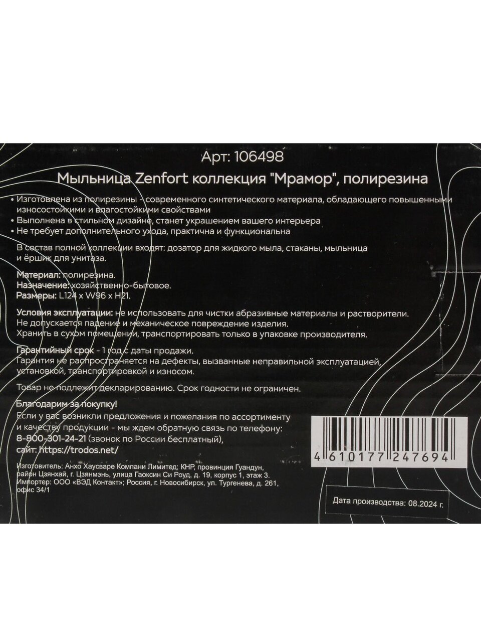 Преимущества мыльницы Zenfort "Мрамор":