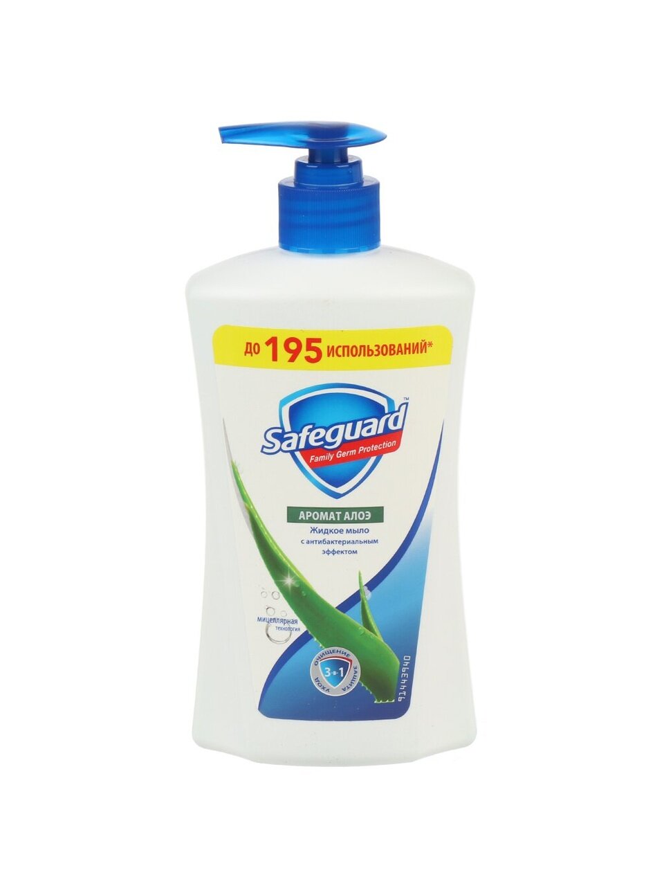 Антибактериальное мыло Safeguard Алоэ с экстрактом алоэ вера в удобной жидкой форме защищает от болезнетворных бактерий даже после смывания и подходит для ежедневного использования. Клинически доказано.