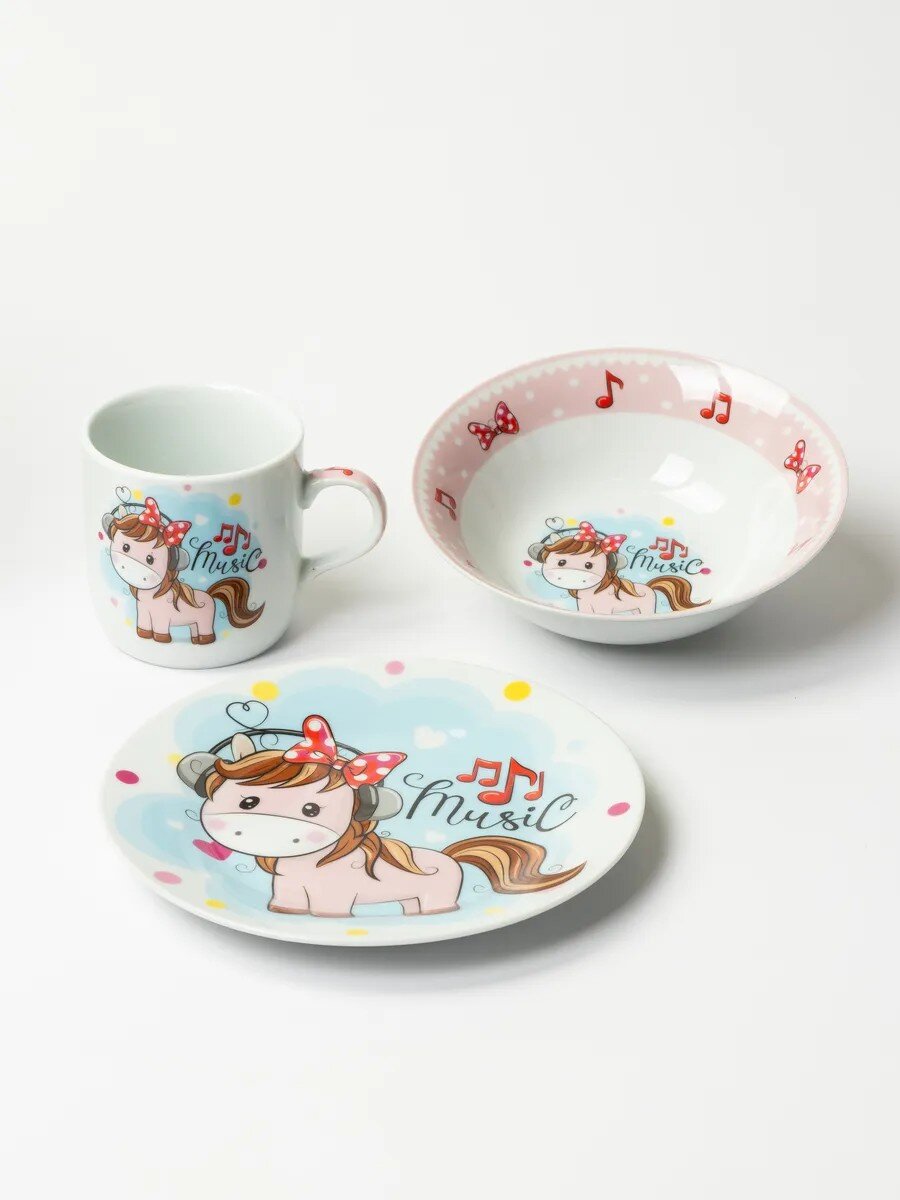 Предметы набора выполнены из высококачественной керамики и декорированы красочным рисунком. Изделия легкие и функциональные. Такой набор обязательно понравится вашему ребенку, потому что теперь у него будет своя собственная посуда с ярким и оригинальным рисунком. Набор посуды для детей включает в себя три предмета: суповую тарелку, обеденную тарелку и кружку. Набор упакован в красочную, подарочную упаковку.