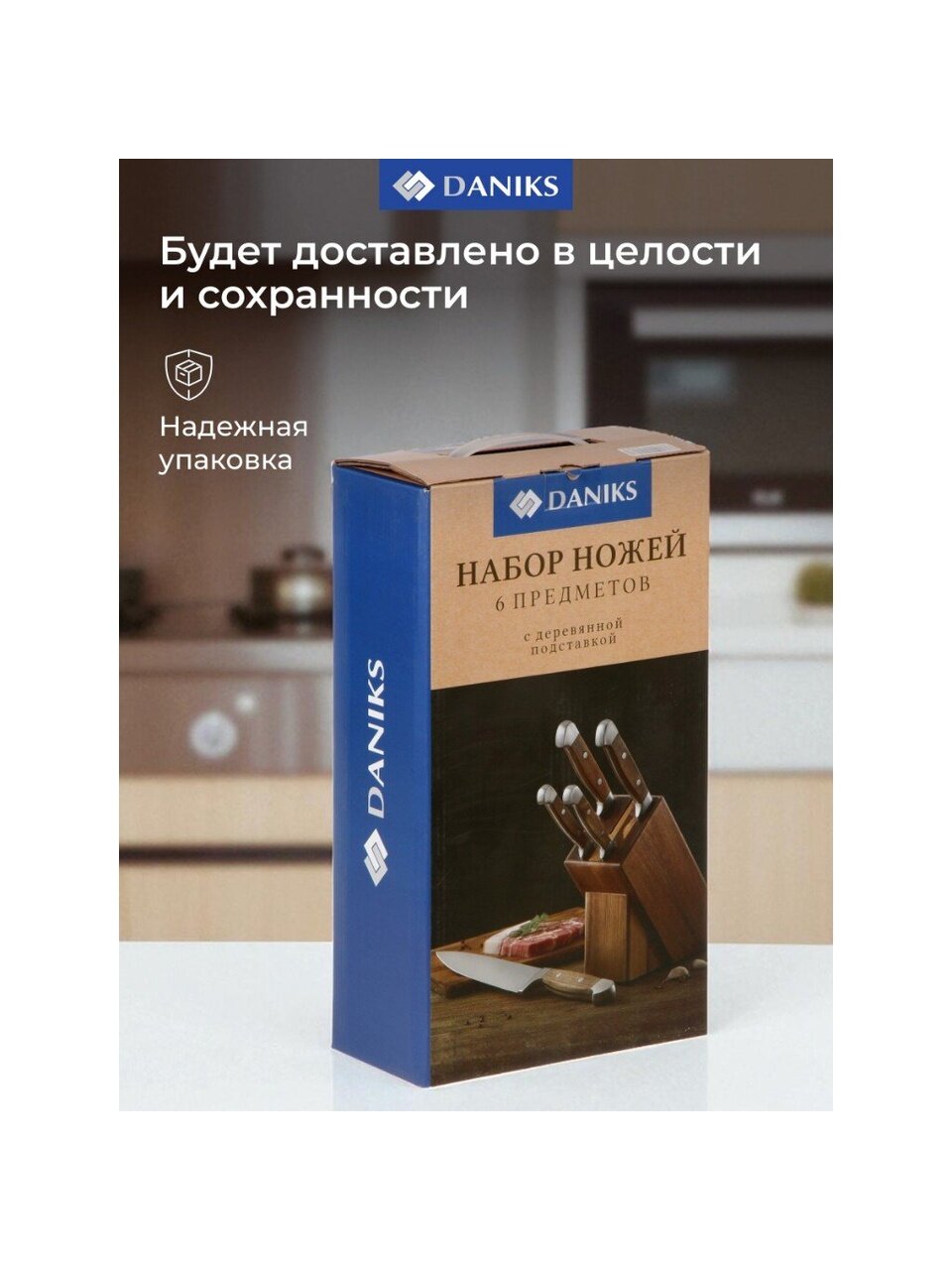 Покупка набора ножей Daniks S-K4333 — это выгодное вложение в комфорт и безопасность кухни. Качественные материалы и продуманный дизайн гарантируют удобство использования на долгие годы. Универсальность набора позволяет сэкономить на покупке отдельных ножей, а компактная подставка экономит место. Наслаждайтесь легкостью приготовления блюд и эстетикой современного кухонного пространства с аксессуарами Daniks.