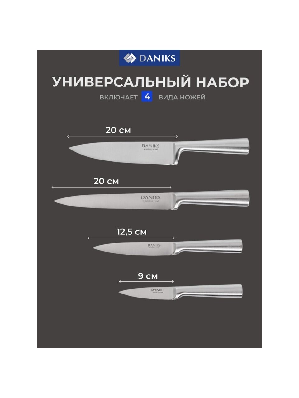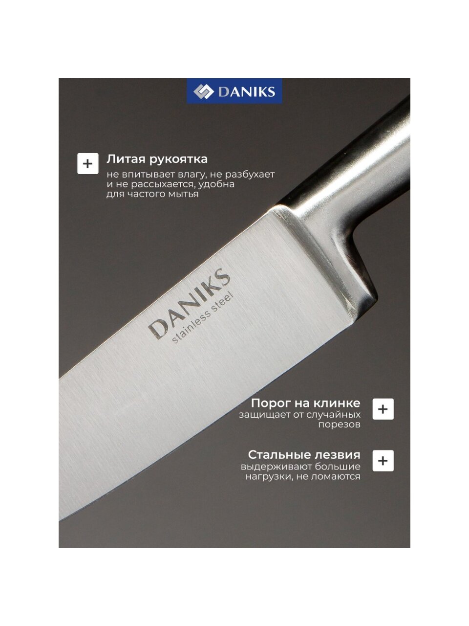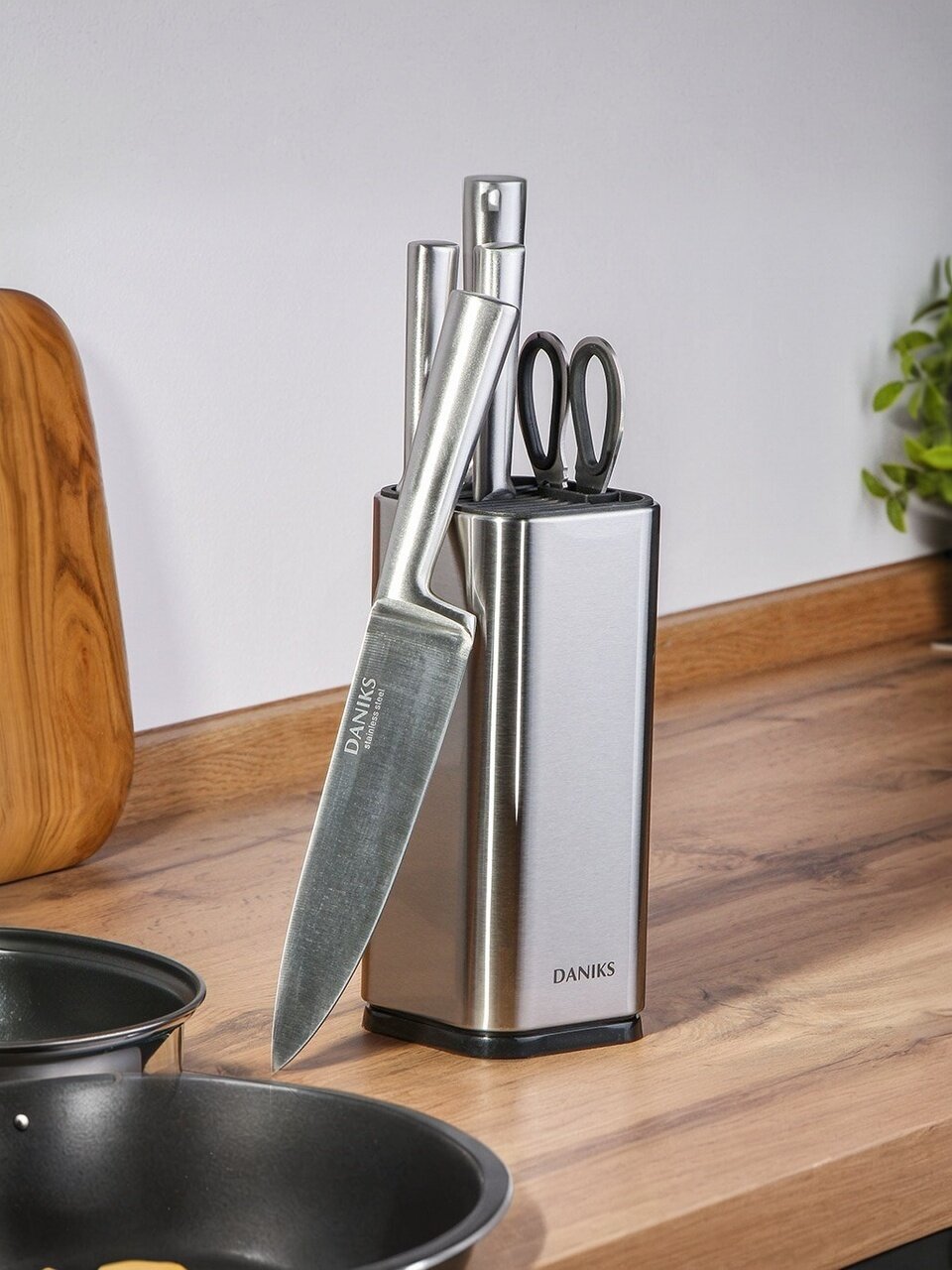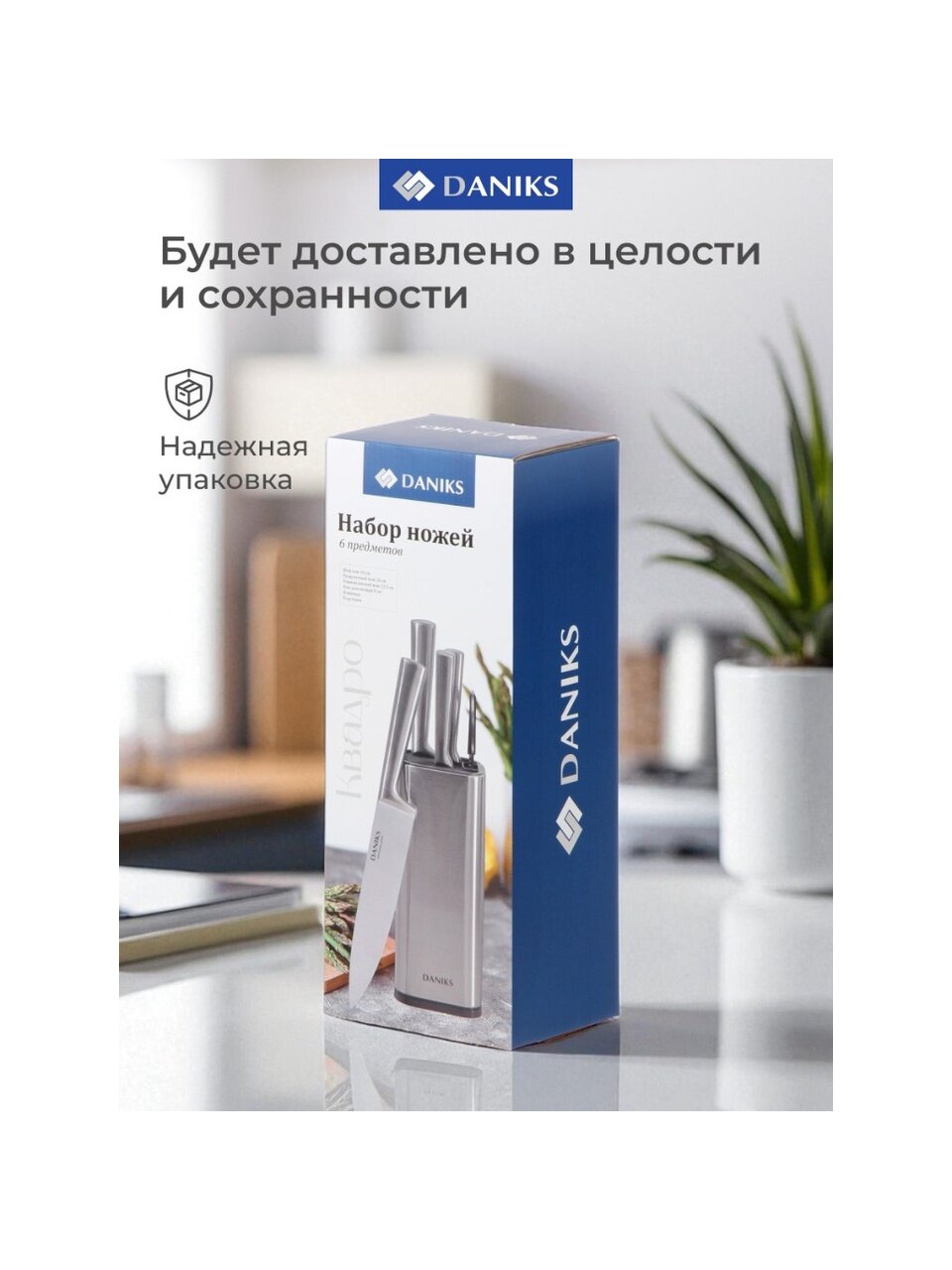 Набор ножей Daniks Квадро — это не только функциональность, но и эстетика. Использование премиальных материалов обеспечивает длительный срок службы, а эргономика продумана для максимального комфорта. Такой комплект станет отличным решением для тех, кто ценит удобство, качество и стиль в каждой детали кухонного пространства.