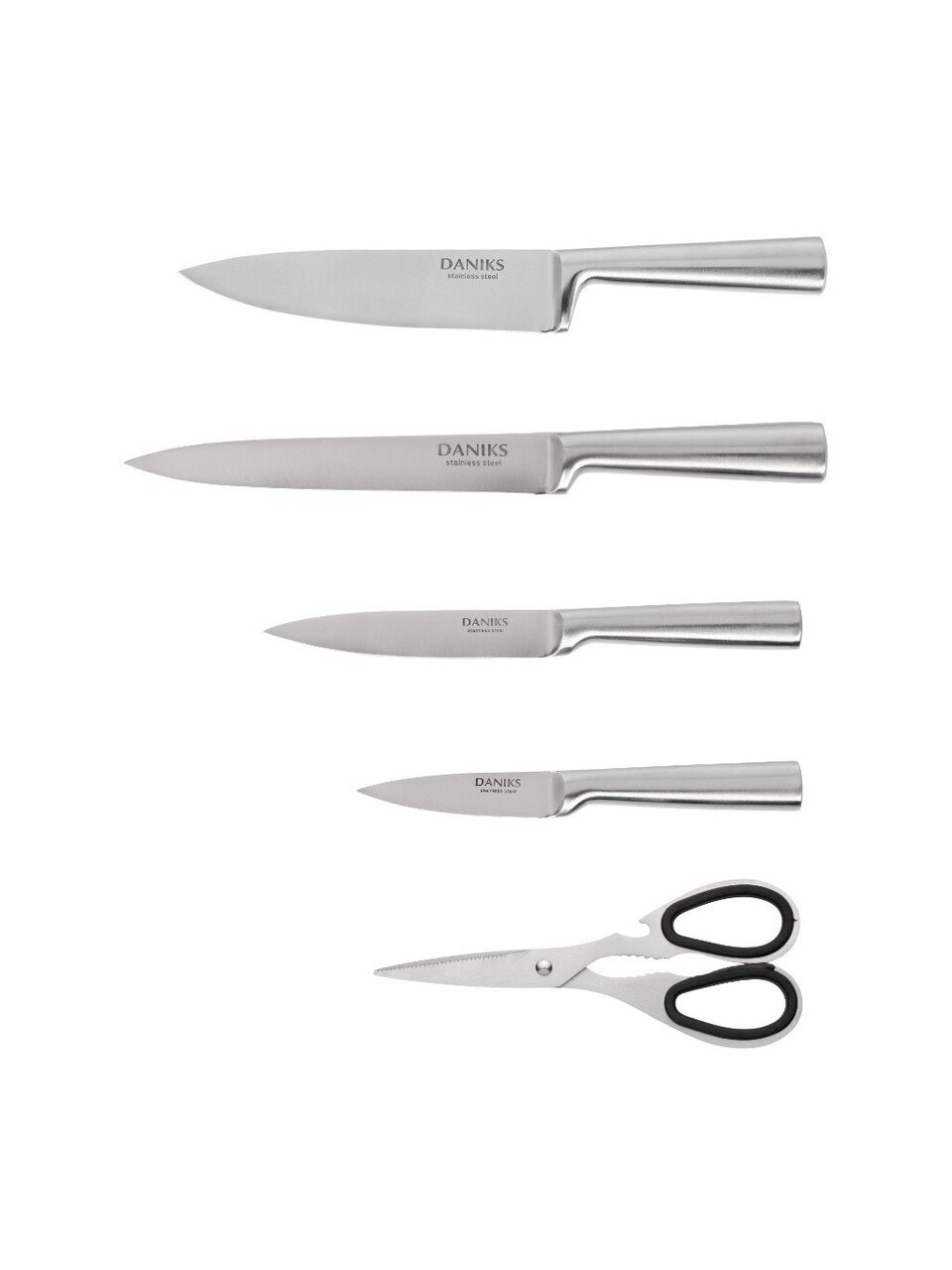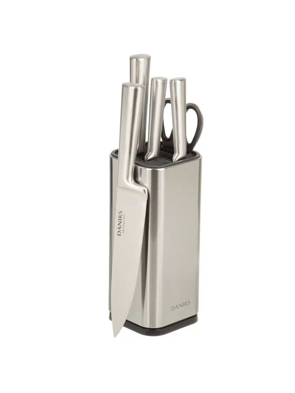 Вы можете приобрести «Набор ножей 6 предметов, нержавеющая сталь, рукоятка нержавеющая сталь, с подставкой, Daniks, Квадро, YW-A155-3» и другие товары в нашем интернет-магазине в Смоленске по низким ценам и с бесплатным самовывозом.