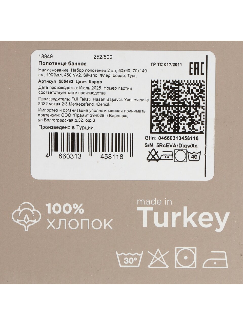 Вы можете приобрести «Набор полотенец 2 шт, 50x90, 70x140 см, 100% хлопок, 450 г/м2, Silvano, Флер, бордо, Турция» и другие товары в нашем интернет-магазине в Твери по низким ценам и с бесплатным самовывозом.