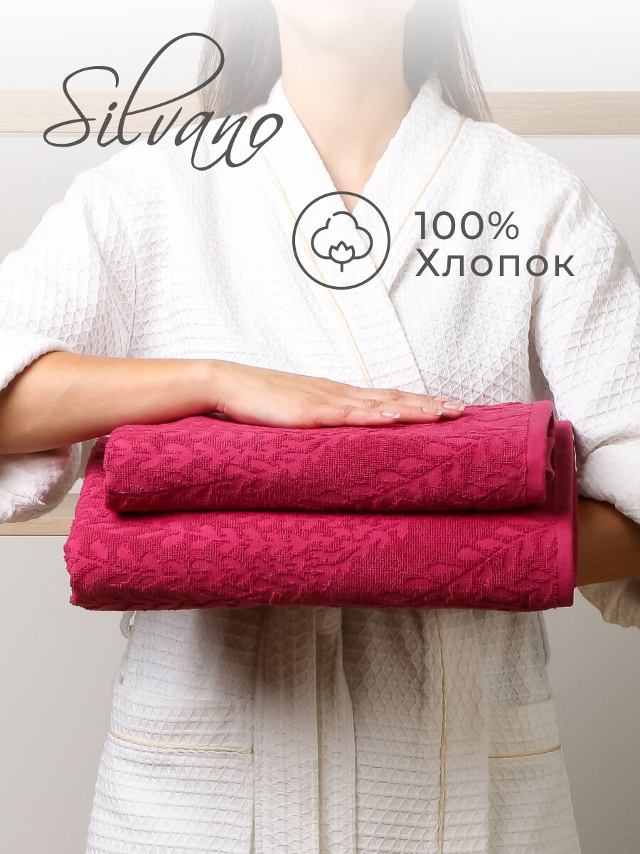 Набор полотенец Silvano Флер бордо: 2 размера, 100% хлопок, 450 г/м2 — комфорт для дома, дачи и стильного подарка