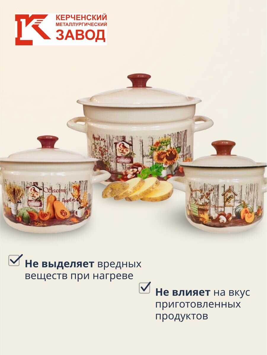 Набор эмалированных кастрюль 2/4/6 л Керченский МЗ Гарден-1: долговечность, универсальность, стиль для кухни и дачи по выгодной цене