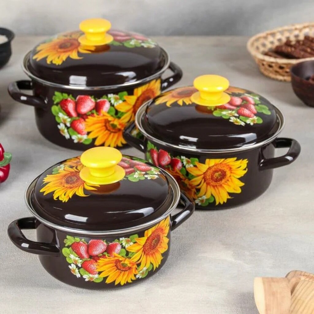Вы можете приобрести «Набор посуды эмалированная сталь, 6 предметов, цилиндрические кастрюли 1.5,2.3,3 л, индукция, Керченский металлургический завод, Даша-1» и другие товары в нашем интернет-магазине в Астрахани по низким ценам и с бесплатным самовывозом.