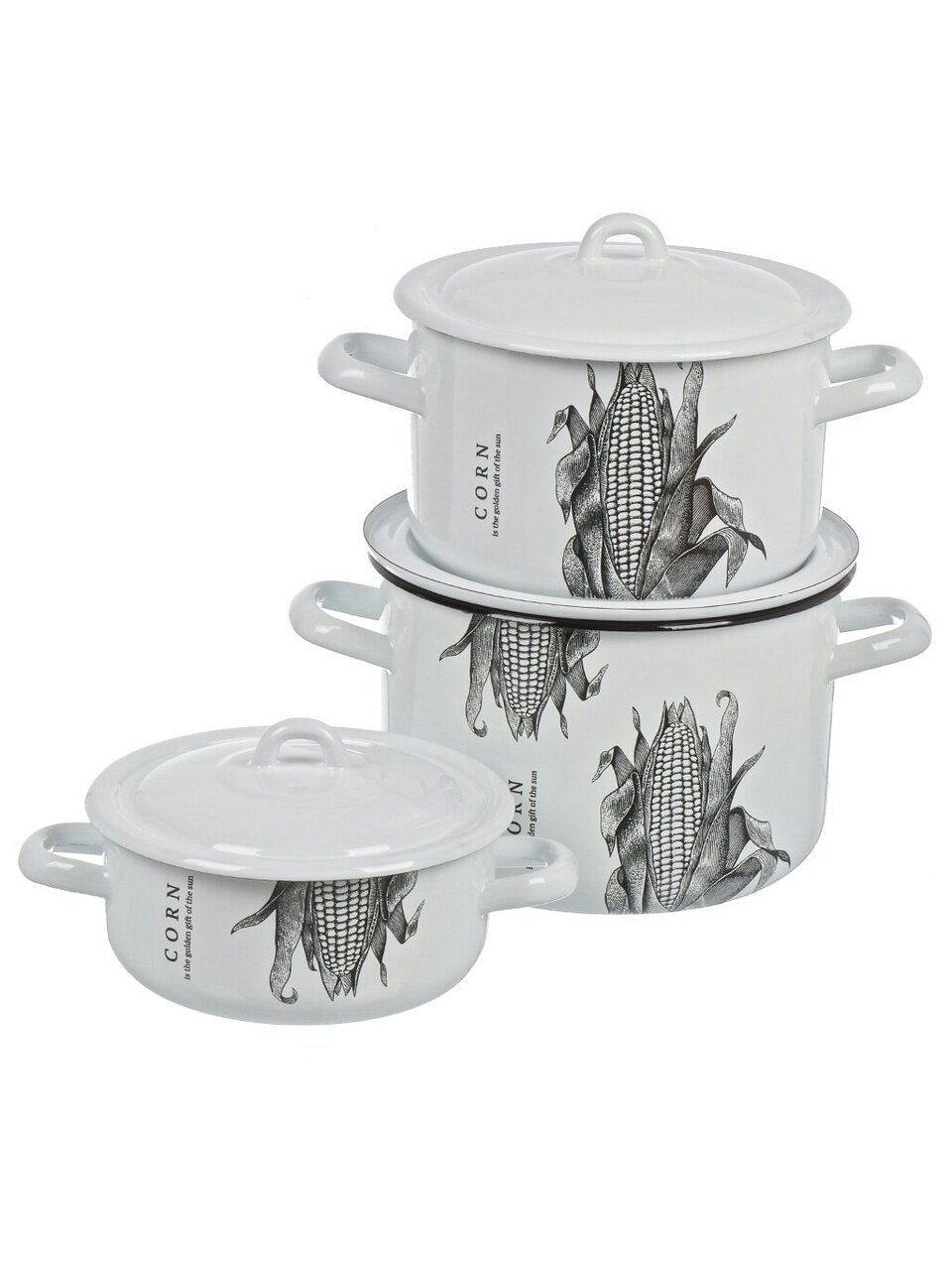 Набор эмалированной посуды ЛЗЭП Corn: 6 предметов для индукции и любых плит, оптимальные объёмы 1.45/2.9/4.3 л — удобство и экономия для дома и дачи.