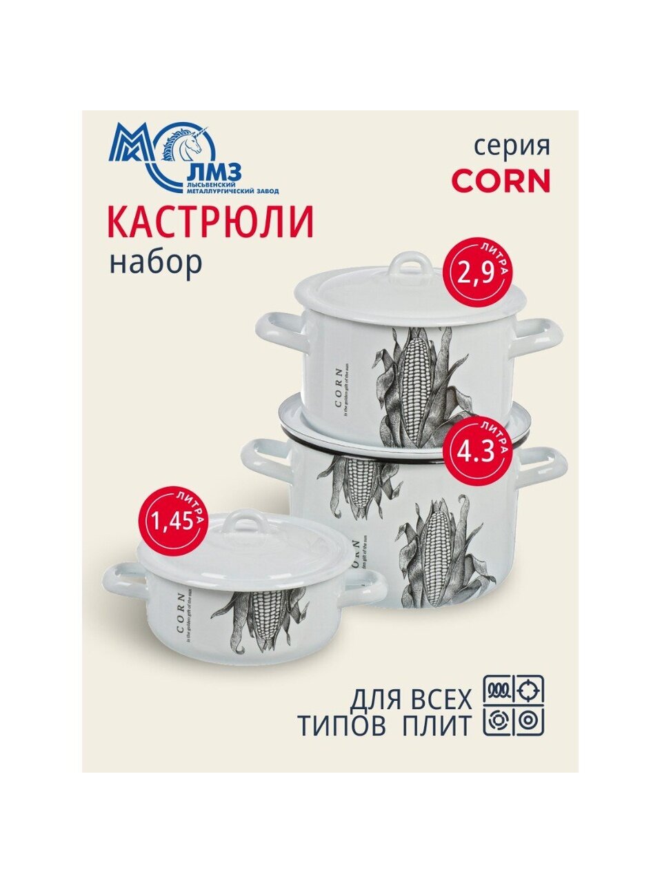Оформите заказ на набор кастрюль ЛЗЭП Corn прямо сейчас — получите универсальную посуду для любых плит по выгодной цене с гарантией качества от российского производителя.