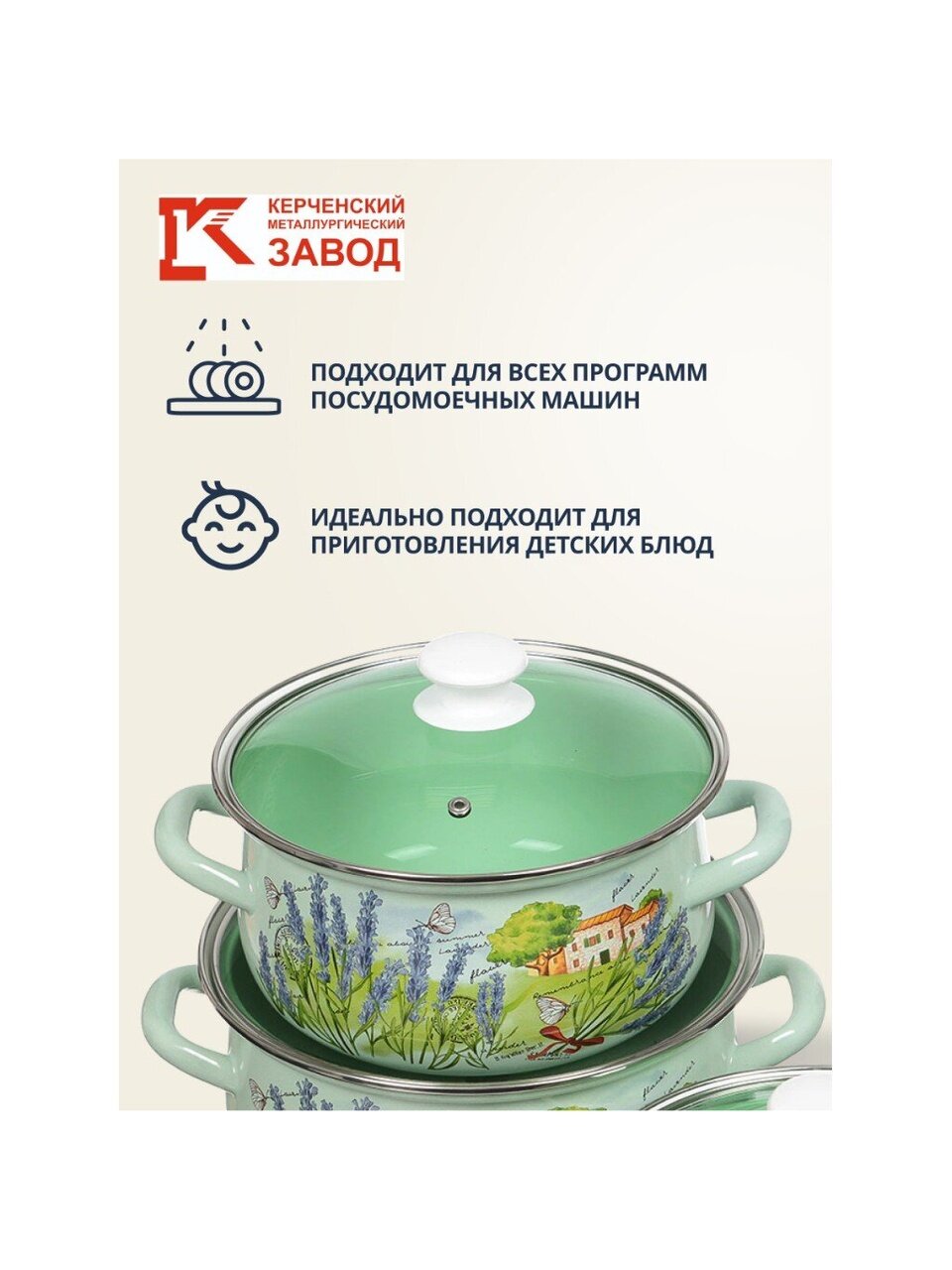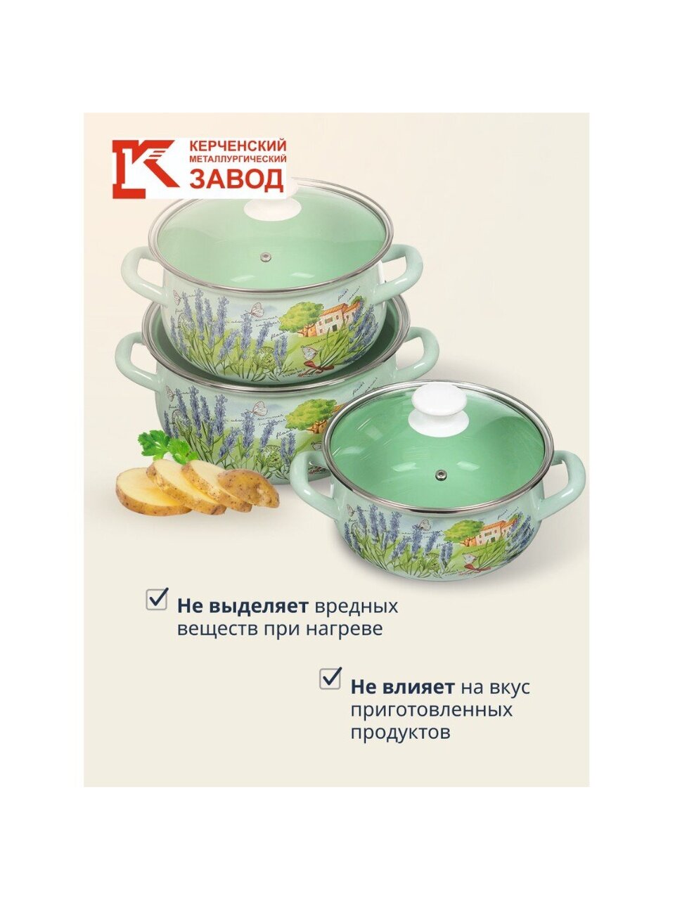 Часто спрашивают: «Как выбрать набор кастрюль для дачи?» — обратите внимание на универсальность этого комплекта и его совместимость с газовыми, электрическими, стеклокерамическими и галогеновыми плитами. Отсутствие антипригарного покрытия упрощает уход: не требуется специальная посуда или средства для мытья. В отличие от аналогов с алюминиевым корпусом, эмалированная сталь не окисляется и сохраняет вкус блюд. Крышки из прозрачного стекла позволяют контролировать процесс готовки без постоянного открывания.