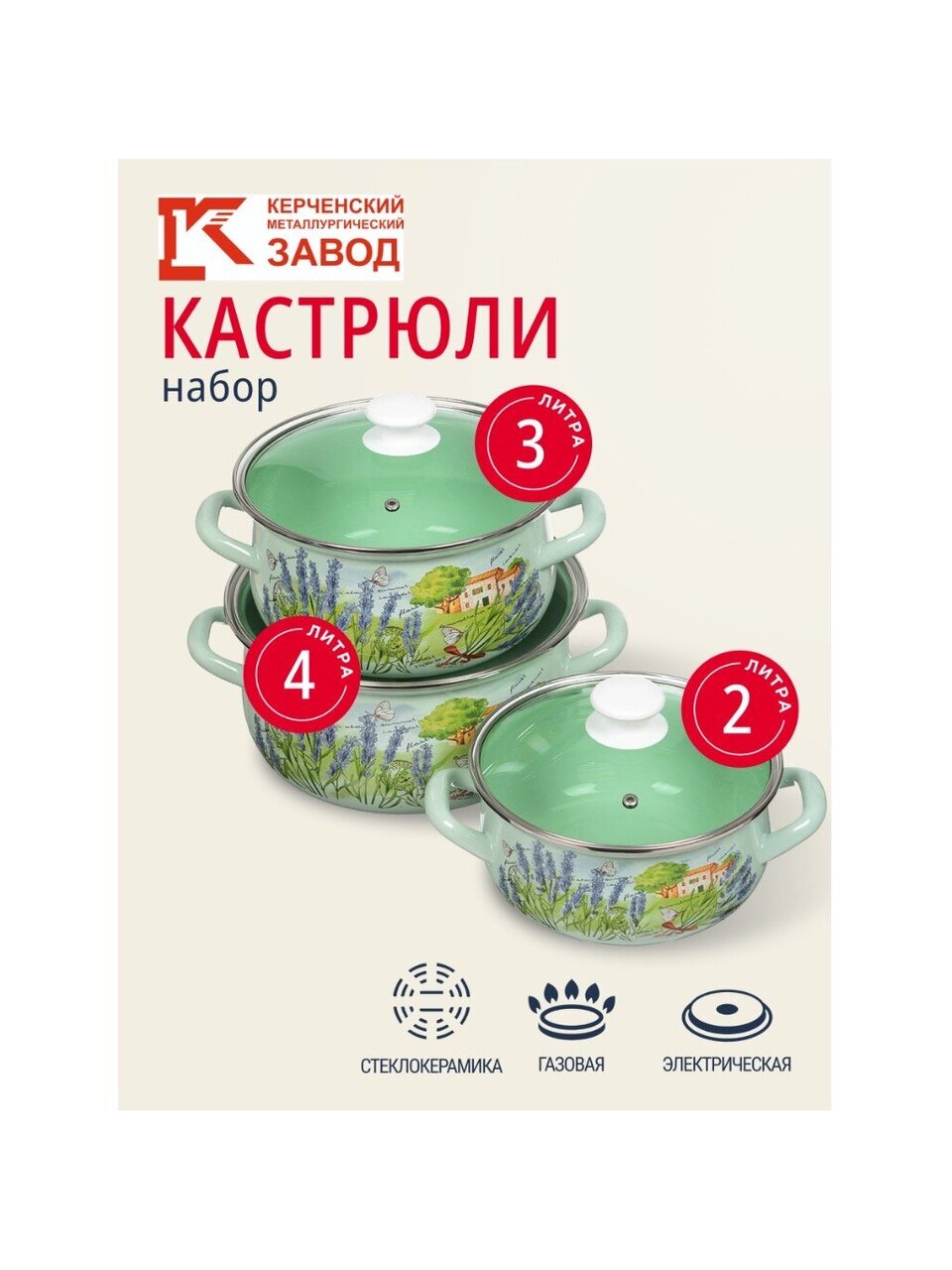 Нет, данный набор кастрюль из эмалированной стали «Тоскана-Экстра» не предназначен для индукционных плит. Он совместим с газовыми, электрическими, стеклокерамическими и галогеновыми конфорками.