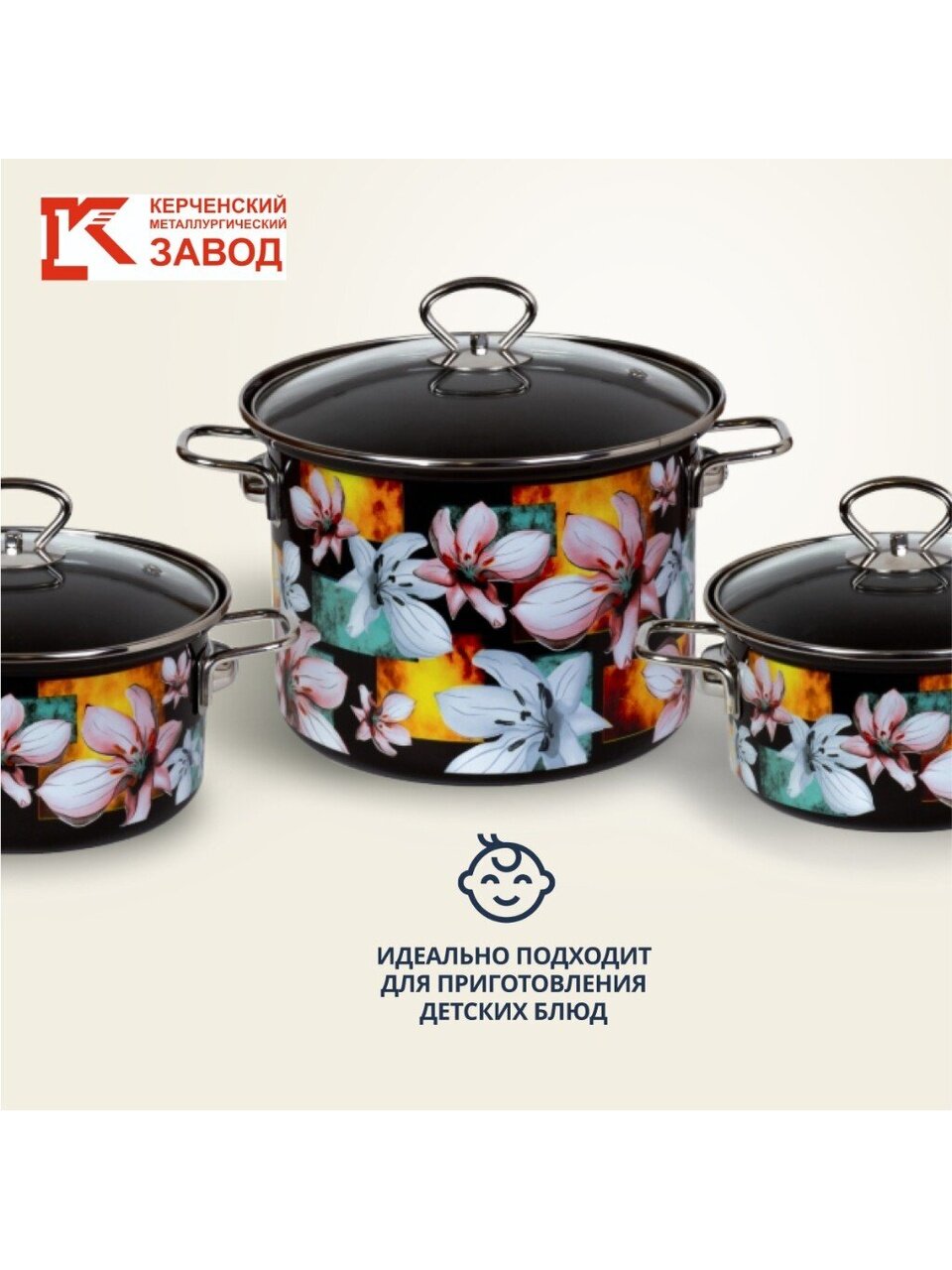 Набор эмалированной посуды 6 предметов Керченский металлургический завод Адель 5-1 Элит: оптимальный выбор для дома и дачи, подходит для индукции и любых плит