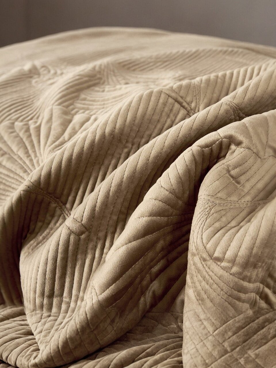 - Из-за особого плетения, велюровая ткань покрывала отражает свет и красиво переливается при различном освещении.