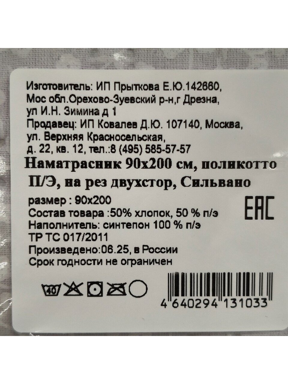 Вы можете приобрести «Наматрасник 90х200 см, 50% хлопок, 50 % полиэстер, 100% полиэфирное волокно, на резинке, двухсторонний, Silvano» и другие товары в нашем интернет-магазине в Ставрополе по низким ценам и с бесплатным самовывозом.