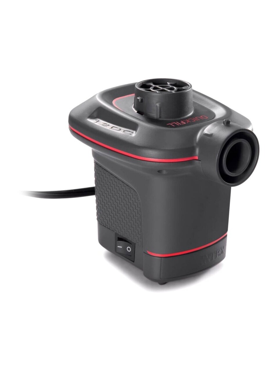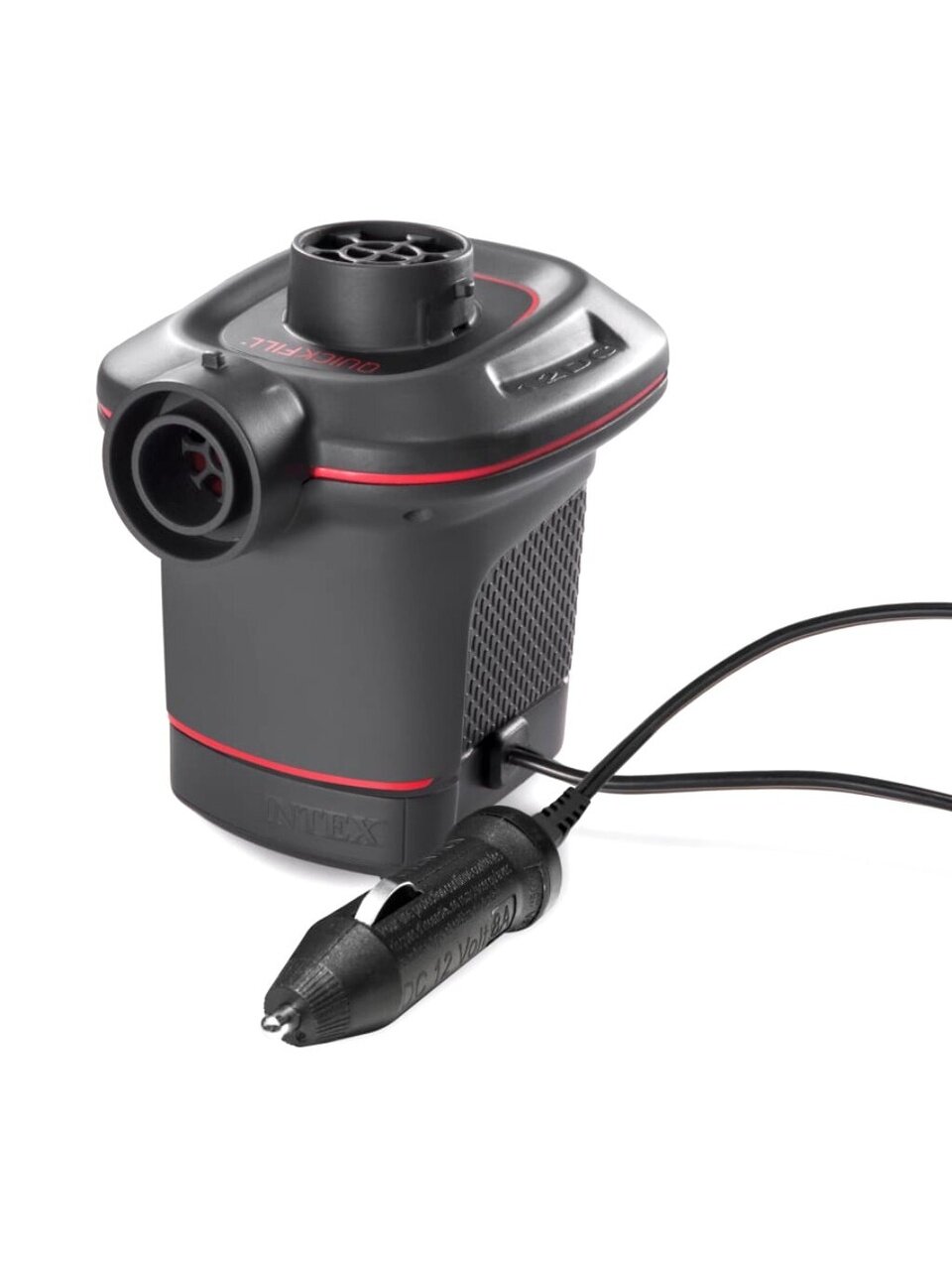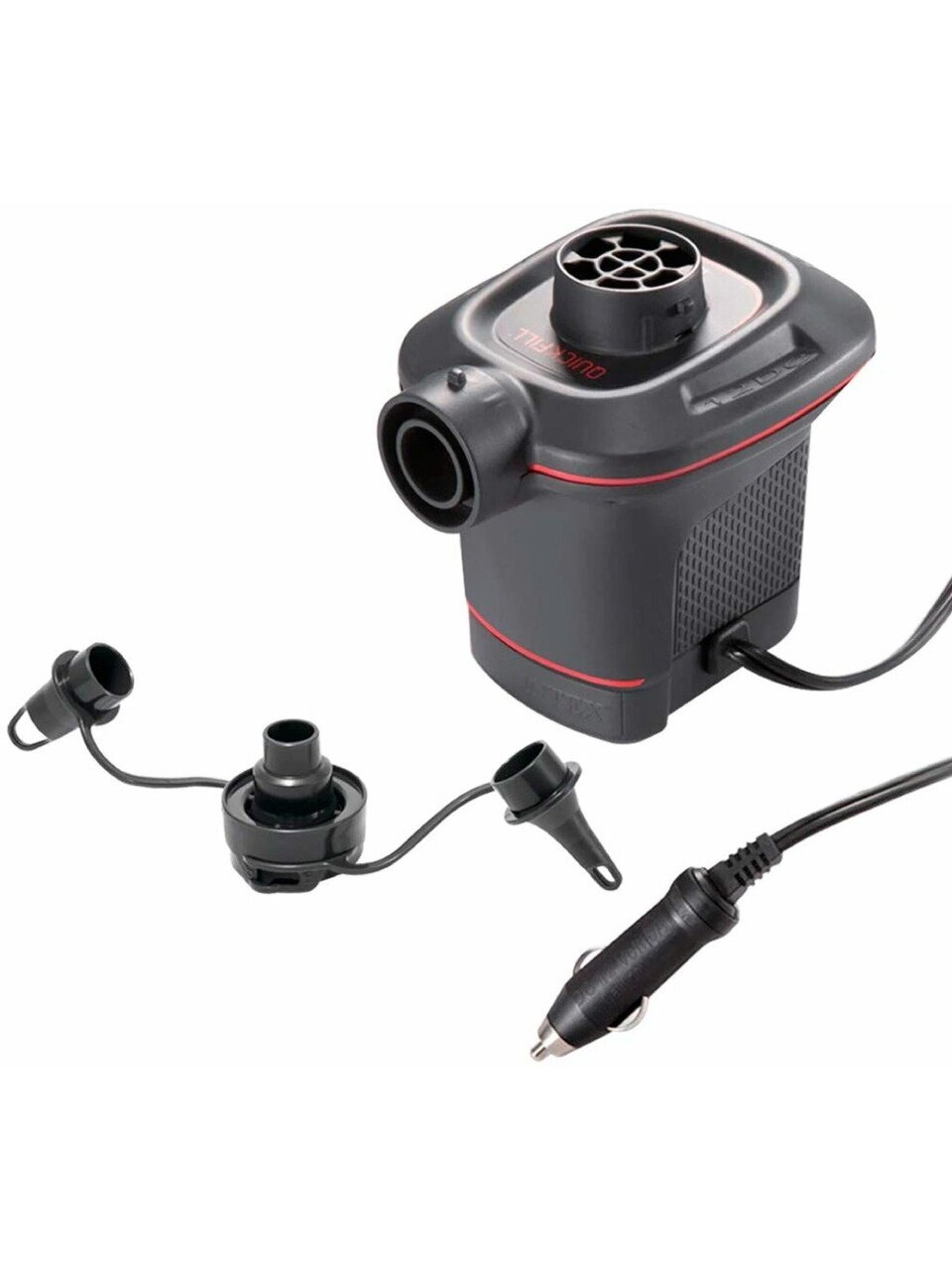 Насос электрический QUICK-FILL представляет собой электронасос, который работает от сети бортового питания автомобиля. С помощью этого насоса можно как накачивать изделия, так и сдувать их. Электрические насосы фирмы Intex изготавливаются из легкого ударопрочного пластика. В комплекте с насосом идет провод к прикуривателю 12в и три универсальных насадки для всех видов надувных изделий.