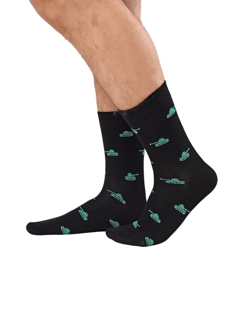 Мужские носки Clever 23Ф, черные, р.27: стиль милитари, хлопок, рисунок танки — идеальный выбор для дома и подарка. Не натирают, не сползают.