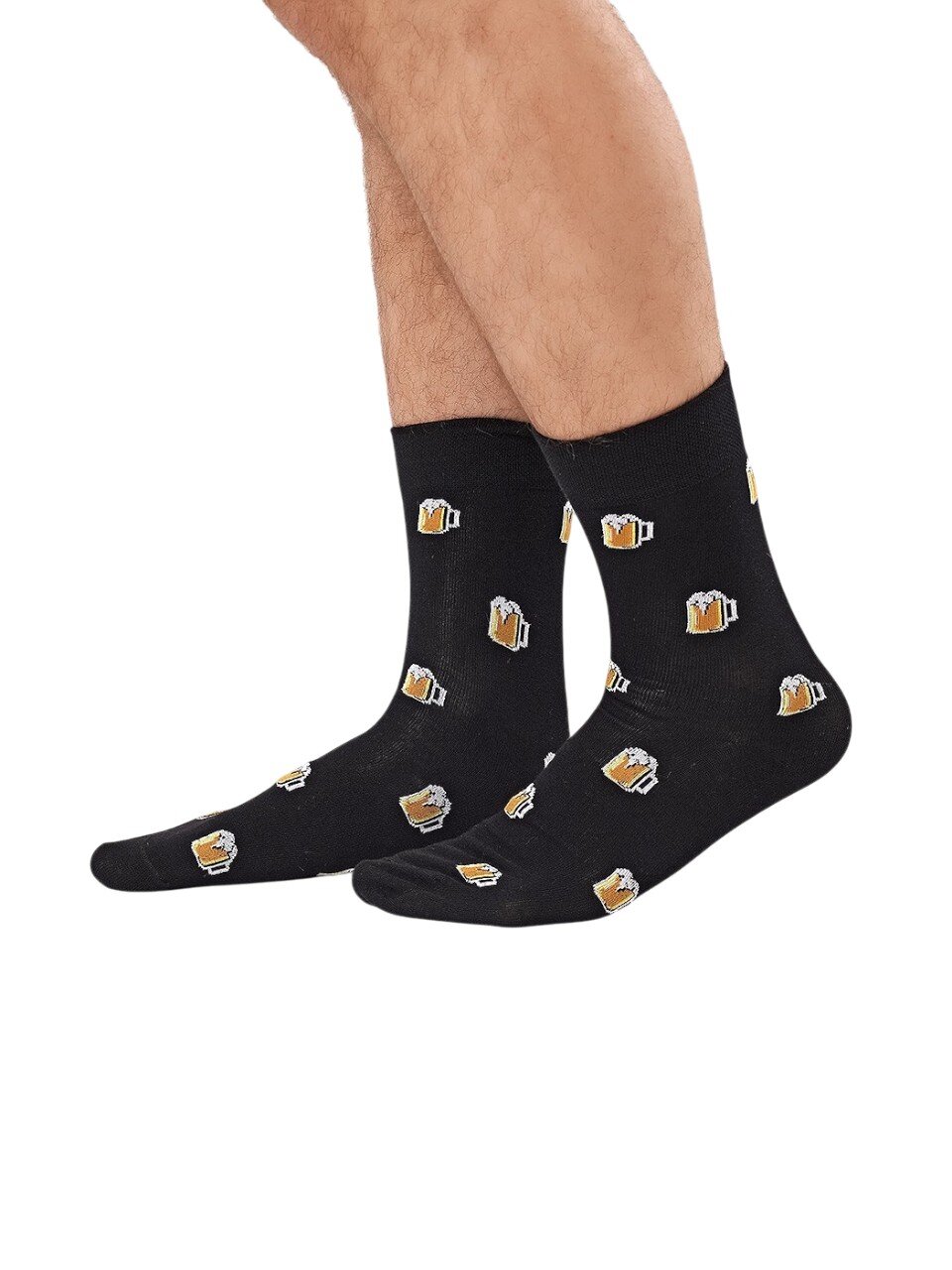 Мужские носки Clever 23Ф, черные с рисунком "пиво", размер 27 — стильный подарок и комфорт для дома и дачи. Тонкие, с высокой посадкой, не сползают.