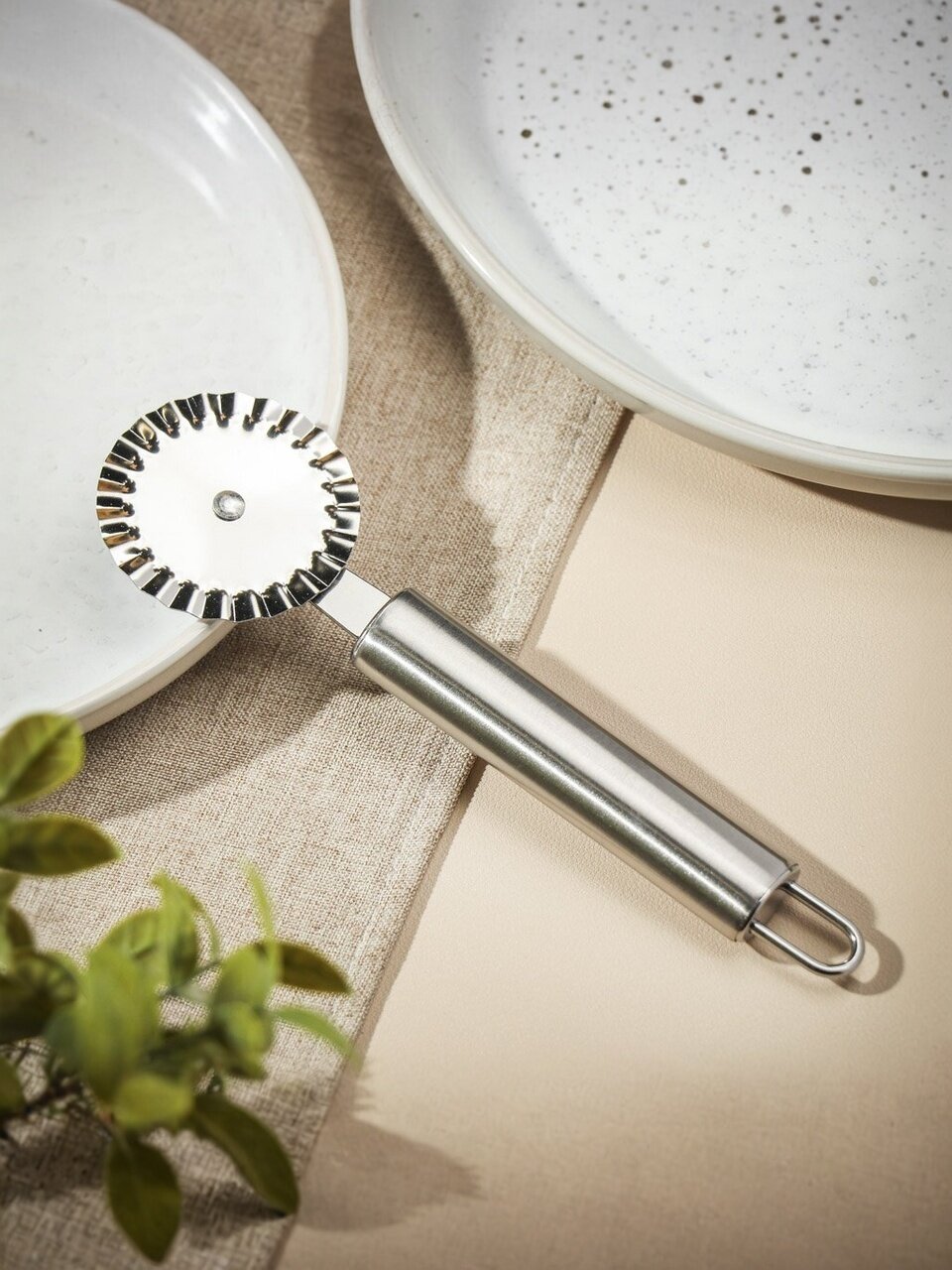 При разрезании пиццы очень важно сохранить достойный внешний вид и не размазать сыр и начинку. Поэтому пиццерезка (тесторезка) идеальный вариант для сервировки этого блюда. Отличный помощник для приготовления блюд из теста: пельменей, чебуреков, выпечки. Изделие изготовлено из нержавеющей высокопрочной стали, которая обеспечивает долгий срок службы. Этот нож подходит для пиццы и теста. За счёт удобной конструкции хорошо лежит в руке.