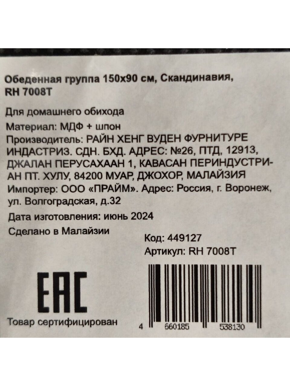 Вы можете приобрести «Обеденная группа 150х90 см, Скандинавия, RH 7008T» и другие товары в нашем интернет-магазине в Белгороде по низким ценам и с бесплатным самовывозом.