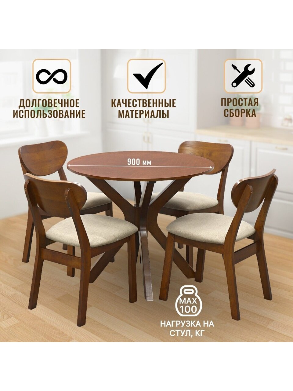- Диаметр столешницы: 900 мм.
