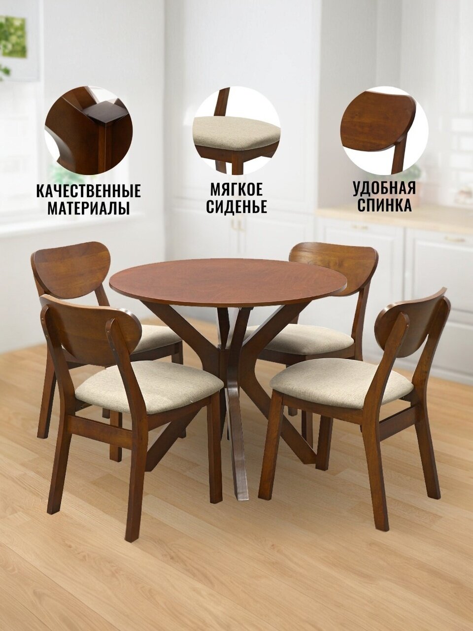 - Обеденная группа будет отлично сочетаться с любым стилем декора и станет настоящим украшением вашего дома.