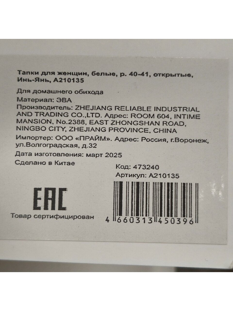 Вы можете приобрести «Тапки для женщин, белые, р. 36-37, открытые, Инь-Янь, A210133» и другие товары в нашем интернет-магазине в Серпухове по низким ценам и с бесплатным самовывозом.