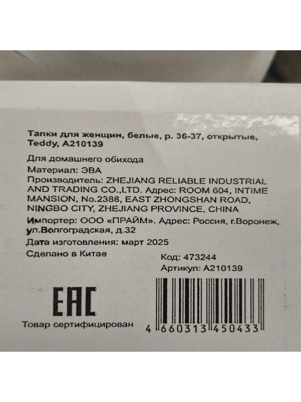 Вы можете приобрести «Тапки для женщин, белые, р. 36-37, открытые, Teddy, A210139» и другие товары в нашем интернет-магазине в Серпухове по низким ценам и с бесплатным самовывозом.