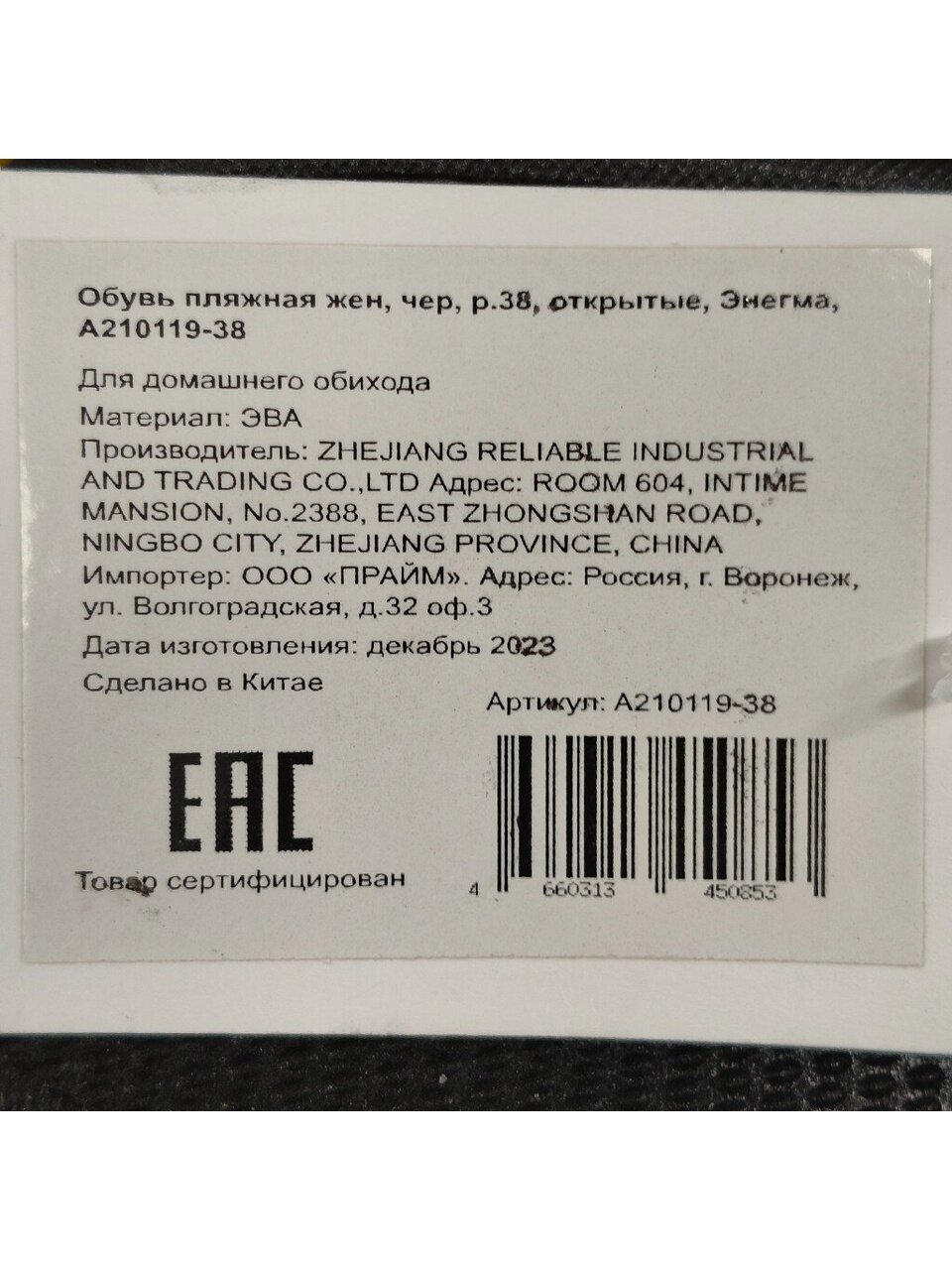 Вы можете приобрести «Обувь пляжная для женщин, ЭВА, черная, р. 38, открытые, Энегма, A210119-38» и другие товары в нашем интернет-магазине в Железногорске по низким ценам и с бесплатным самовывозом.
