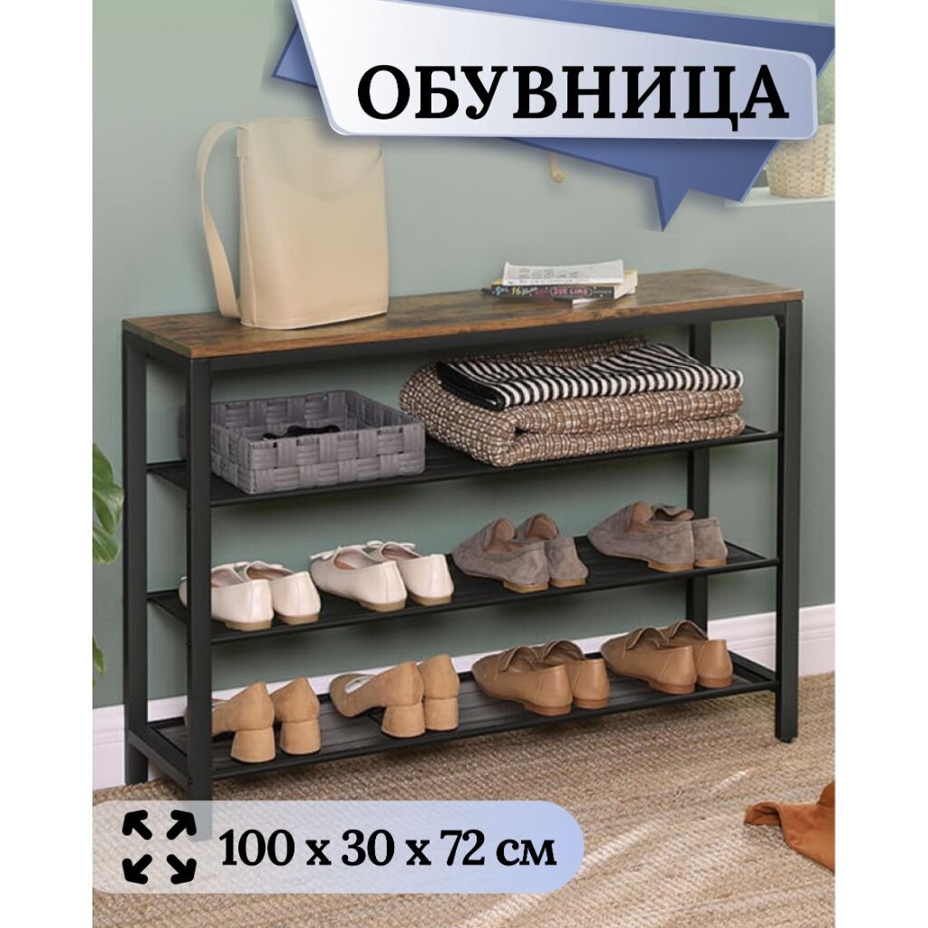 Вы можете приобрести «Полка для обуви, ДСП+сталь, 4 секции, 100х30х72 см, с сетчатыми полками, коричнево-черная, Лофт, LBS14BX» и другие товары в нашем интернет-магазине в Санкт-Петербургe по низким ценам и с бесплатным самовывозом.