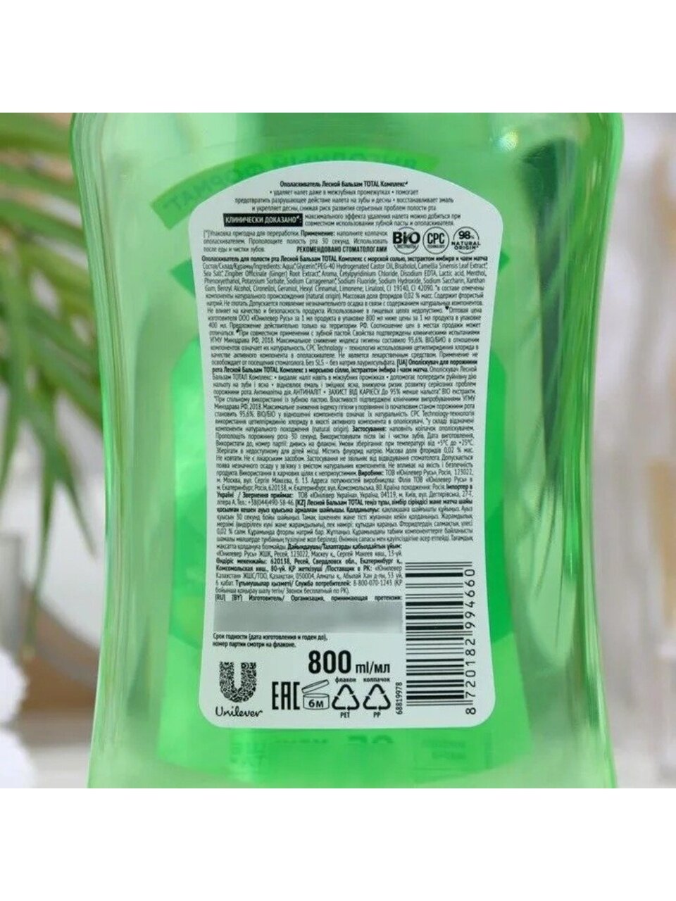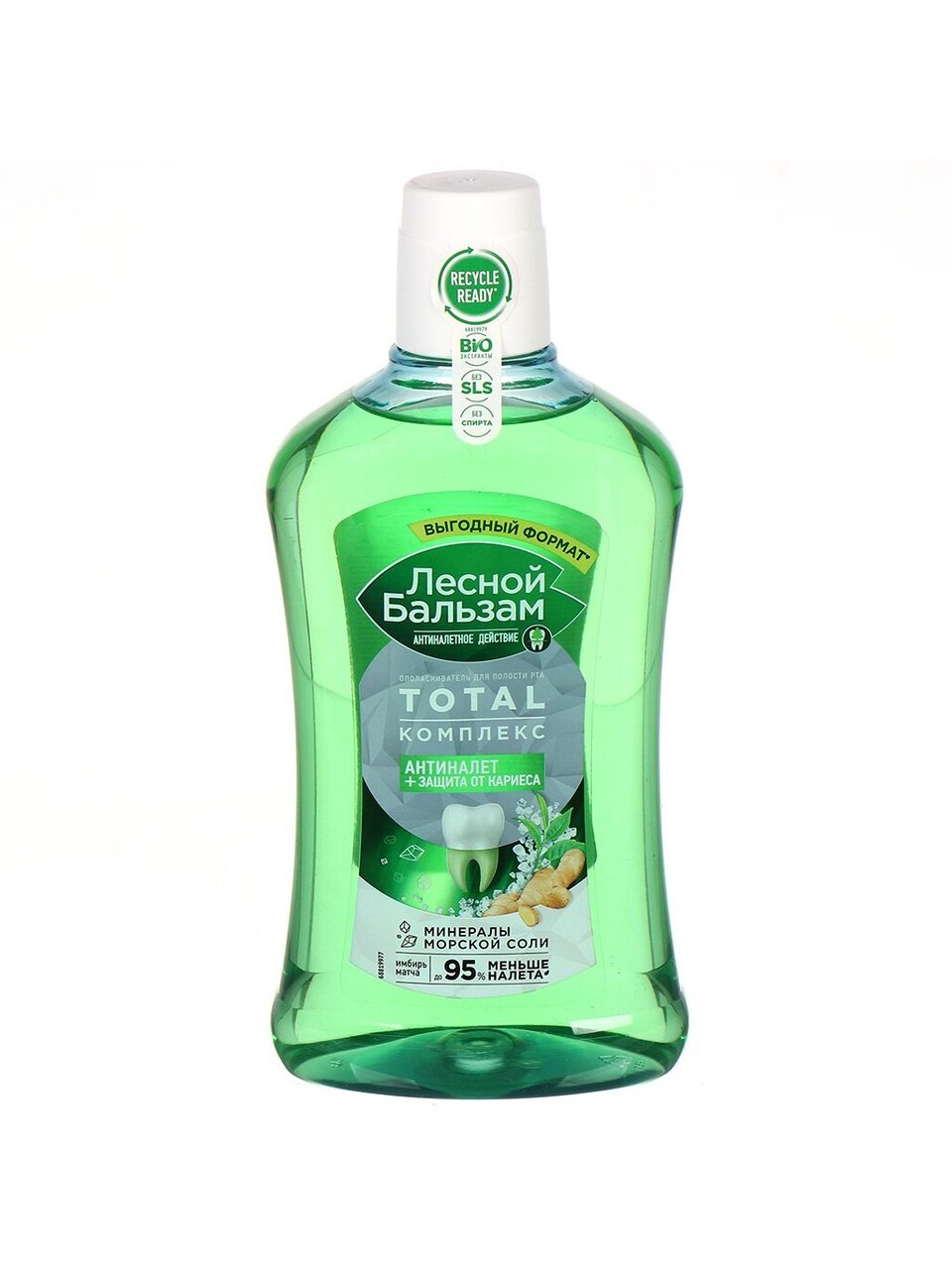 Лесной бальзам Total комплекс с морской солью, экстрактом имбиря и чаем матча, в составе которого 98% ингредиентов натурального происхождения. Ополаскиватель борется с первопричиной развития серьезных проблем полости рта – зубным налетом, который вызывает кариес, влияет на изменение цвета зубов, приводит к образованию зубного камня и кровоточивости десен.