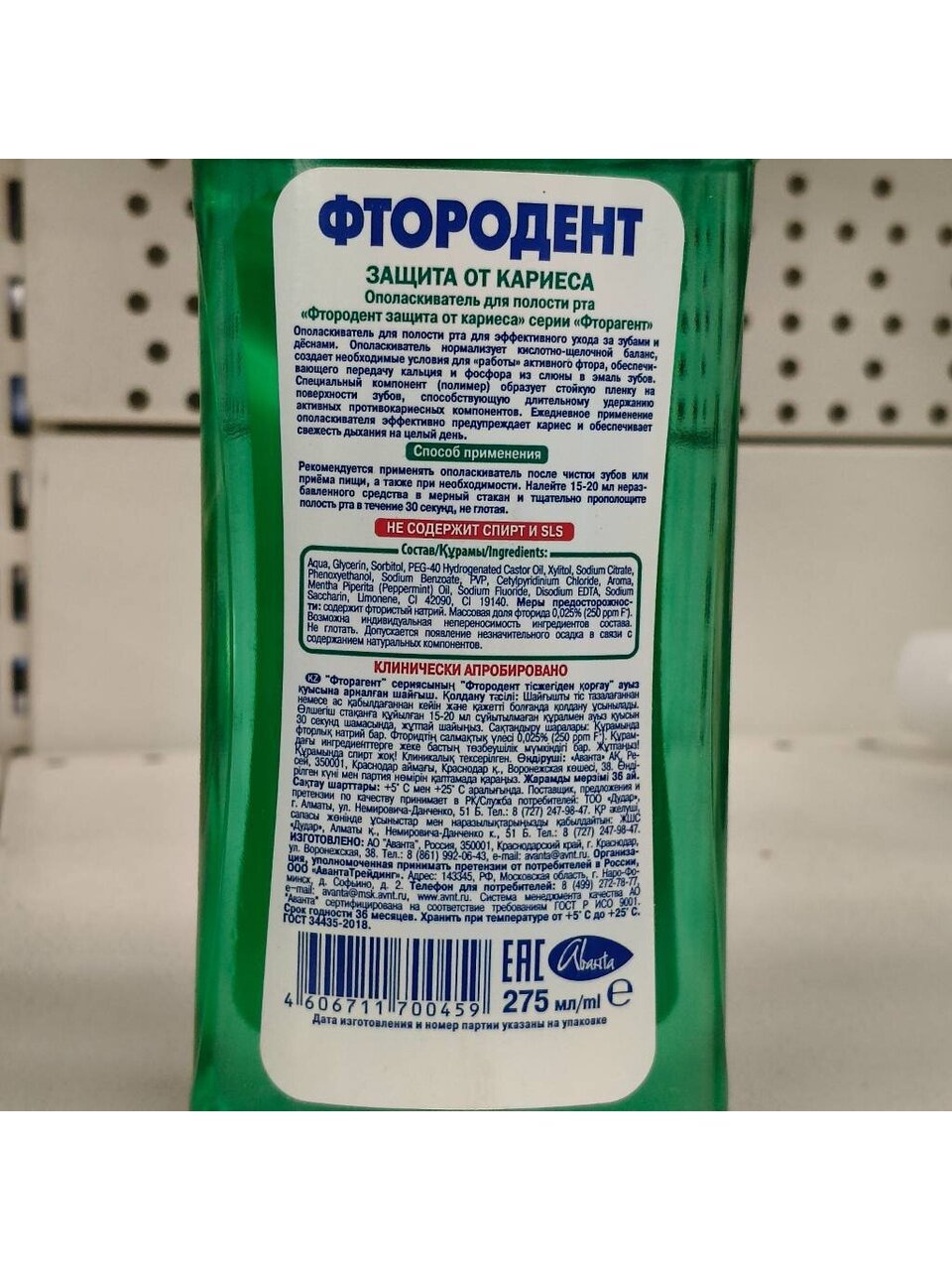 Вы можете приобрести «Ополаскиватель для полости рта Фтородент, Защита от кариеса, 275 мл» и другие товары в нашем интернет-магазине в Смоленске по низким ценам и с бесплатным самовывозом.