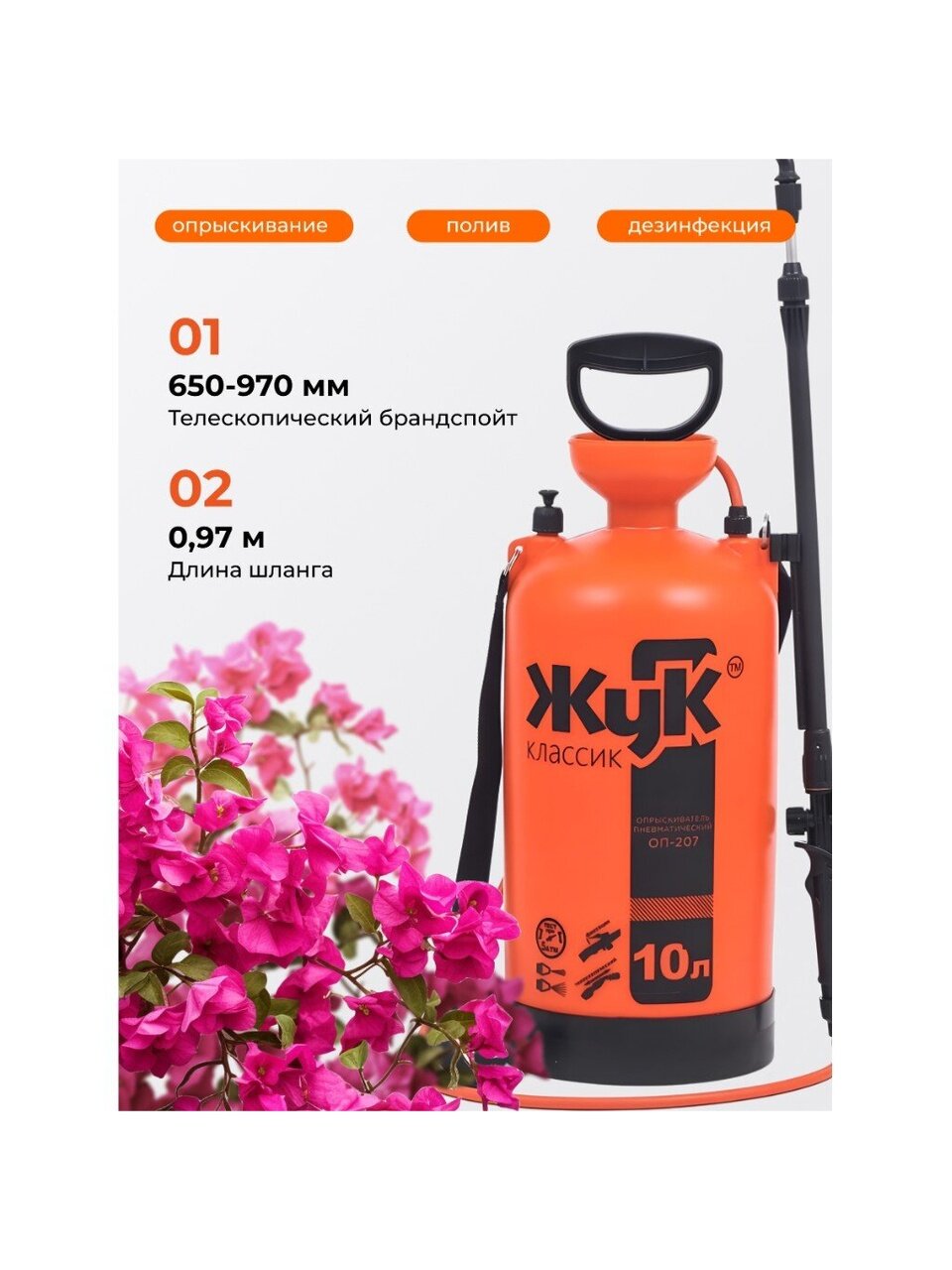 Вы можете приобрести «Опрыскиватель садовый Жук, 10 л, пластик, 650-970 мм, телескопический брандспойт, Классик, ОП-207 0451-00» и другие товары в нашем интернет-магазине в Иваново по низким ценам и с бесплатным самовывозом.