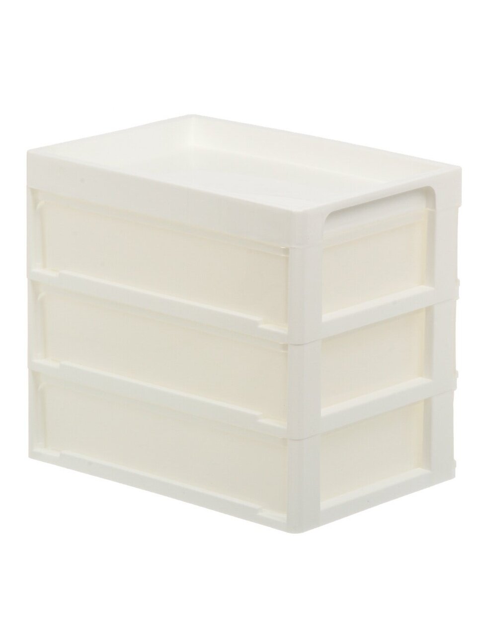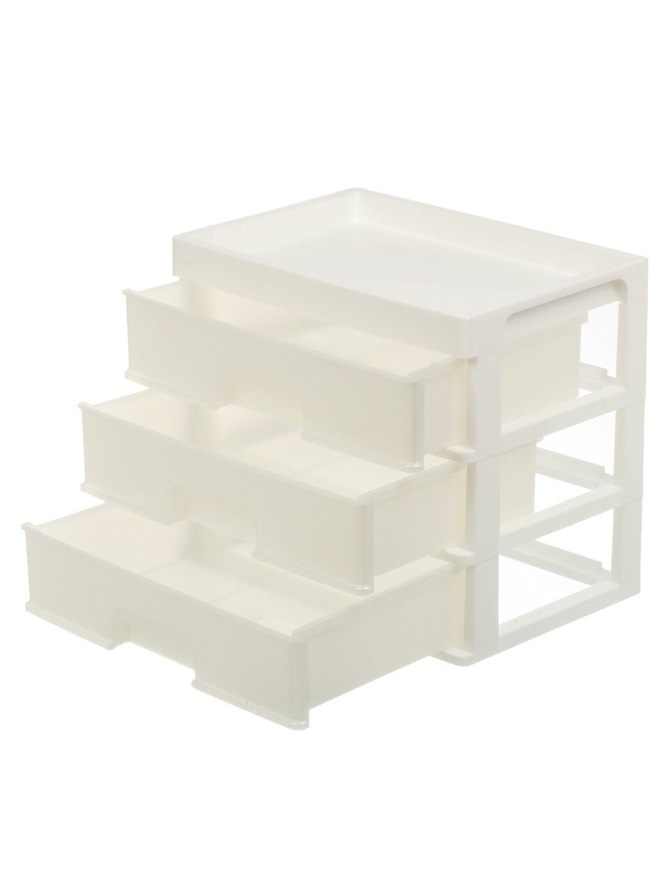 Органайзер выполнен в белом перламутровом цвете, что придает ему элегантность и универсальность, позволяя гармонично вписаться в любой интерьер. Три вместительных ящика обеспечивают достаточно места для хранения мелочей, от канцелярских принадлежностей до косметики и аксессуаров. Благодаря продуманной конструкции, все необходимые вещи будут всегда под рукой и в полном порядке.