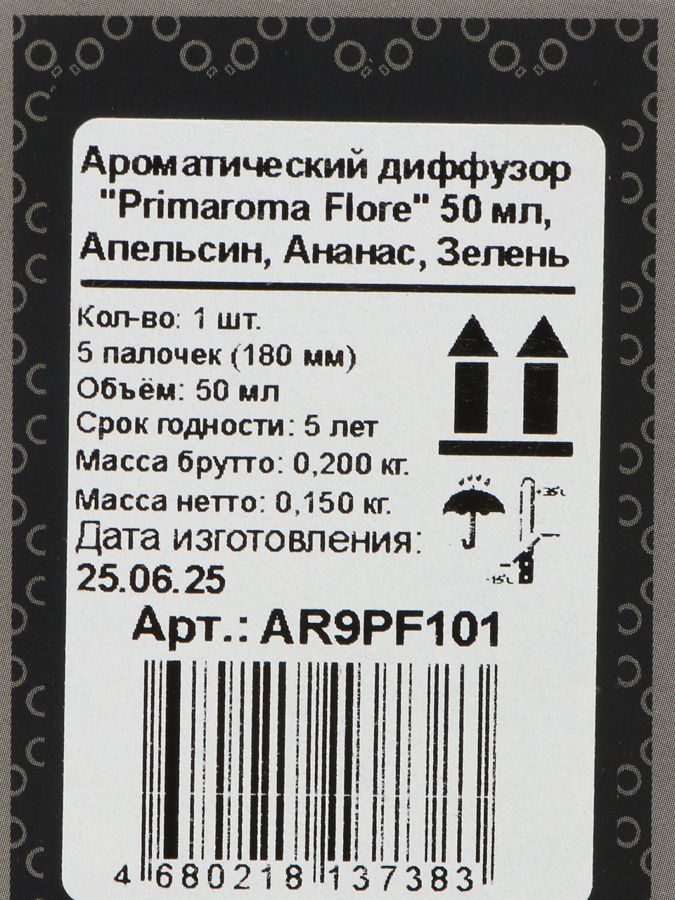 Аромадиффузор Primaroma, 50 мл, Flore, Апельсин, Ананас, Зелень, AR9PF101