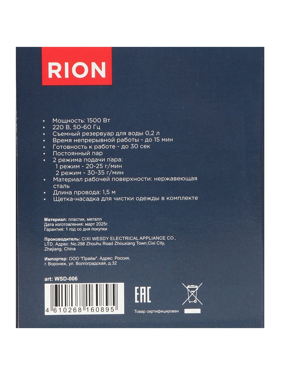 Вы можете приобрести «Отпариватель Rion, WSD-006, 1500 Вт, 0.2 л, серый» и другие товары в нашем интернет-магазине в Смоленске по низким ценам и с бесплатным самовывозом.