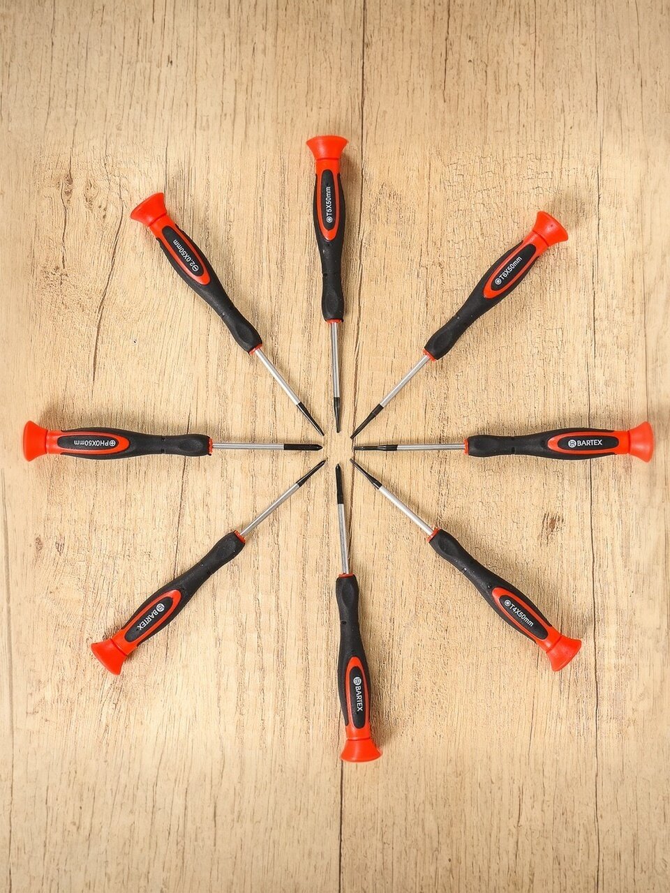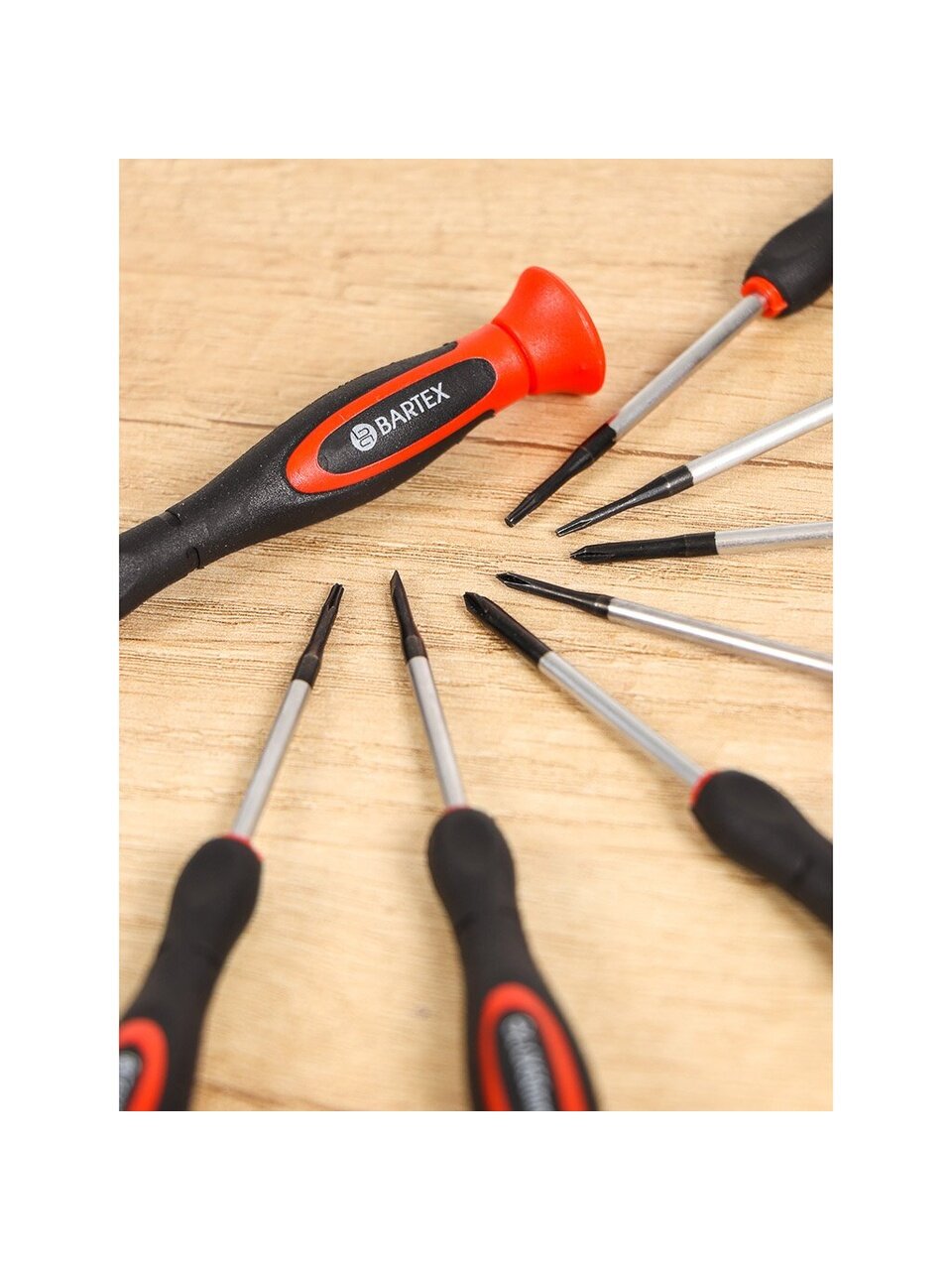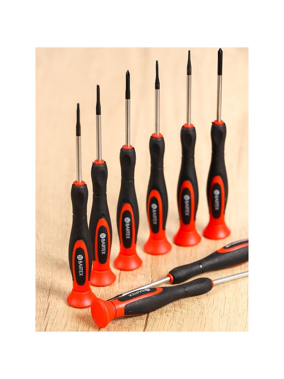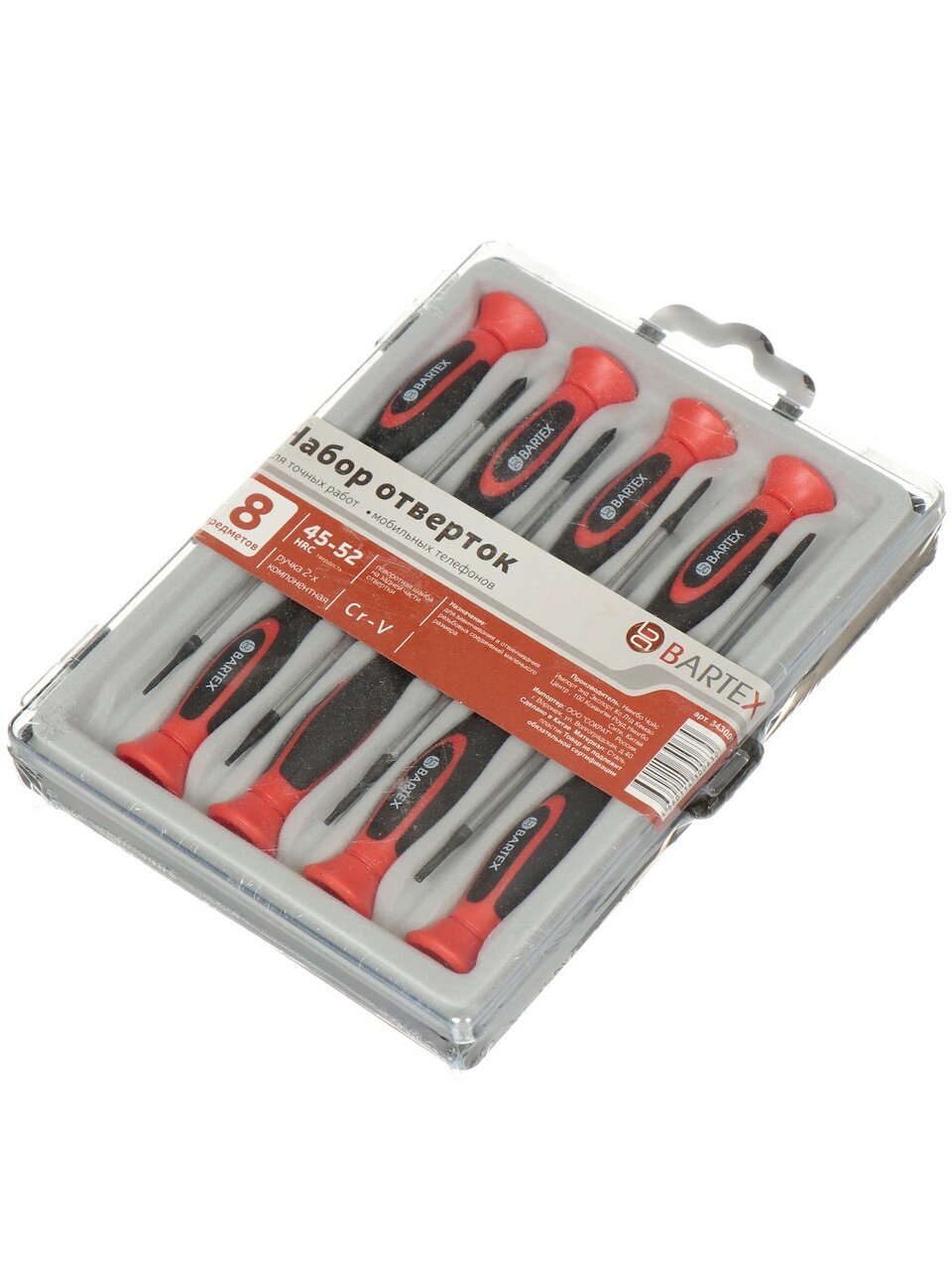 Набор отверток для точных работ Bartex — идеальный выбор для тех, кто ценит надежность и удобство при ремонте мобильных телефонов и другой мелкой электроники. Компактный кейс удобно хранить дома или брать с собой на дачу, чтобы всегда быть готовым к мелкому ремонту. В комплекте 8 высокоточных инструментов: плоские, крестовые и TORX отвертки с различными размерами шлица, что позволяет легко справляться с большинством задач по обслуживанию техники и гаджетов.