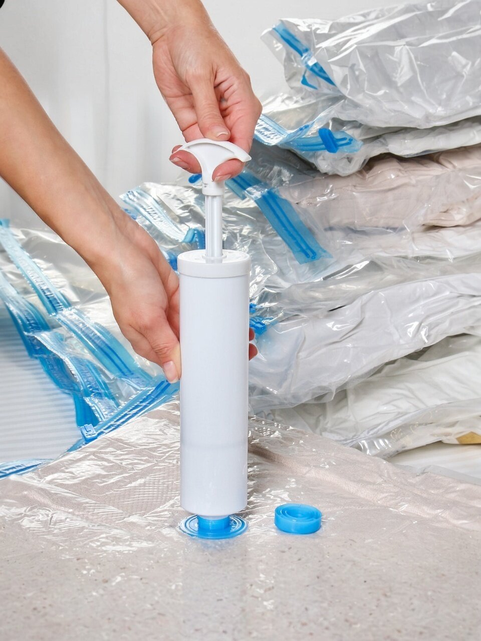- Максимальная комплектация: 11 пакетов разных размеров + ручной насос — всё для хранения одежды, постельного белья, сезонных вещей