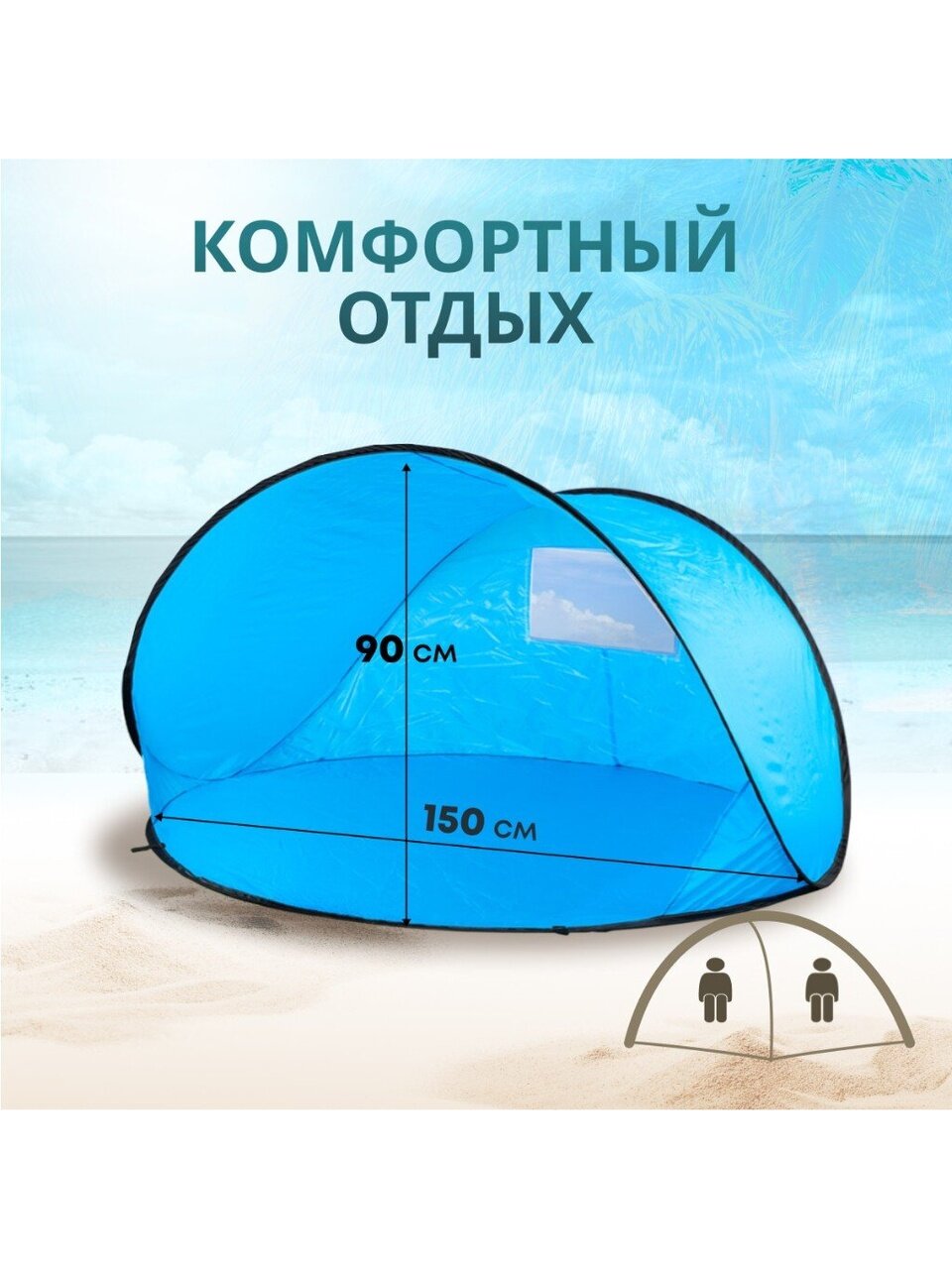 Вы можете приобрести «Палатка пляжная 2-местная, 150х150х90 см, 1 слой, есть чехол, полиэстер, T2022-500» и другие товары в нашем интернет-магазине в Клинцах по низким ценам и с бесплатным самовывозом.