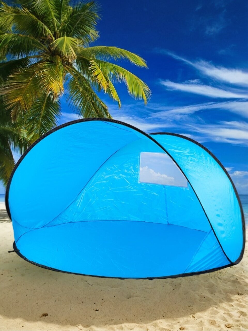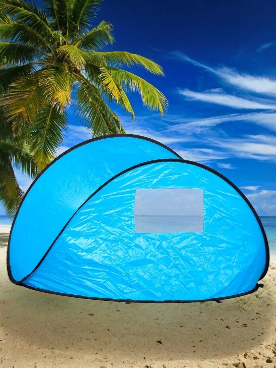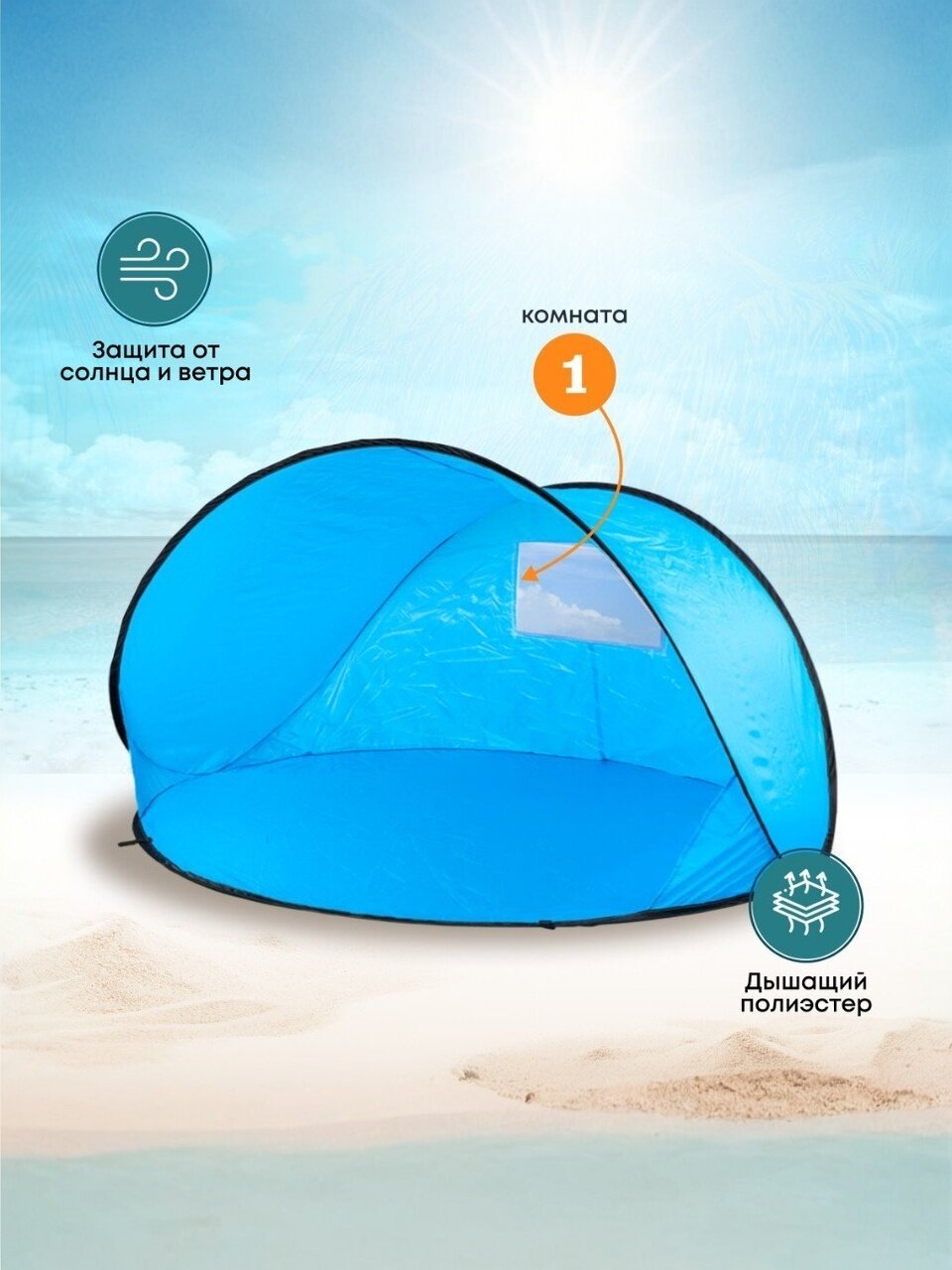 С пляжной палаткой не потребуется брать с собой пляжный зонт и покрывало, так как одна палатка заменит оба предмета.