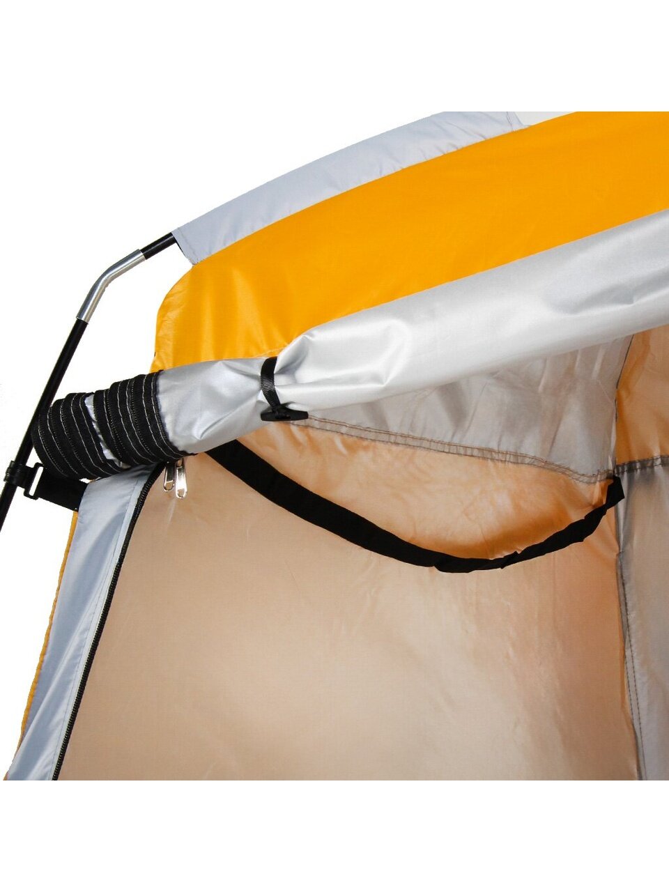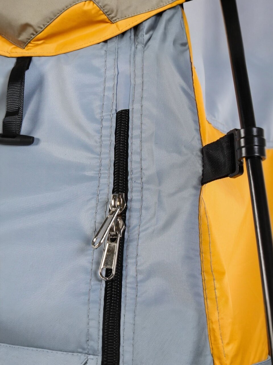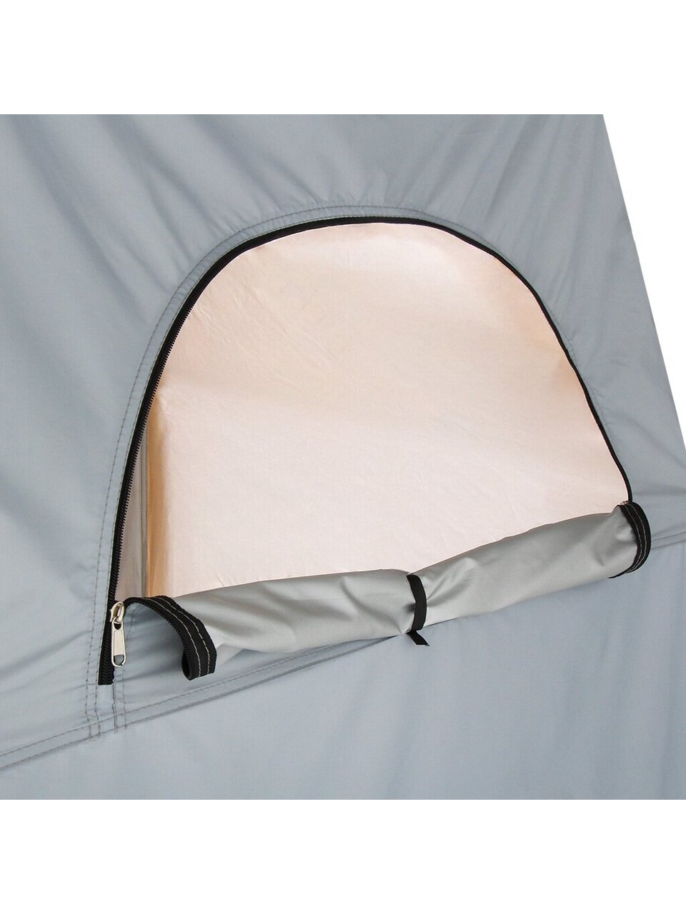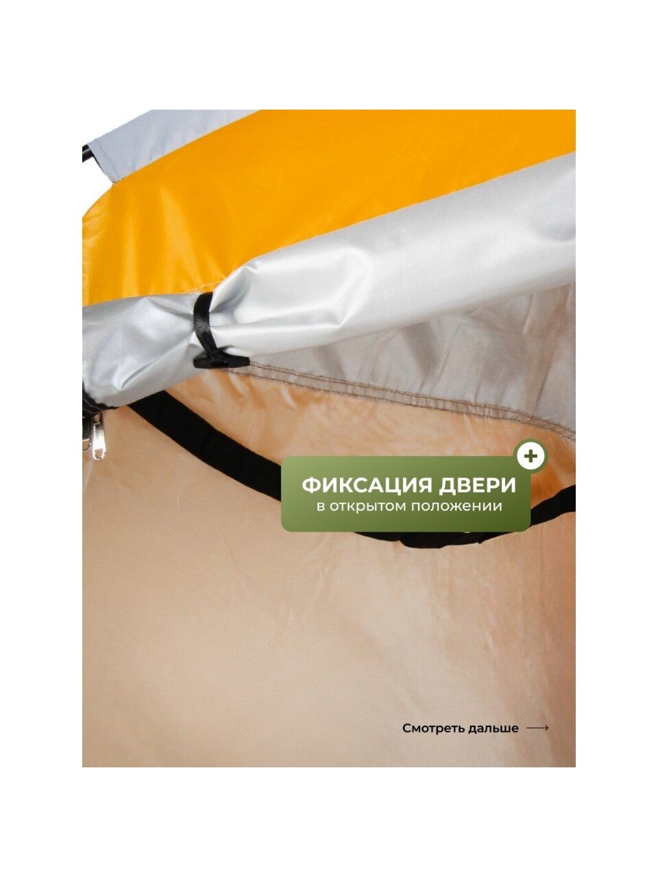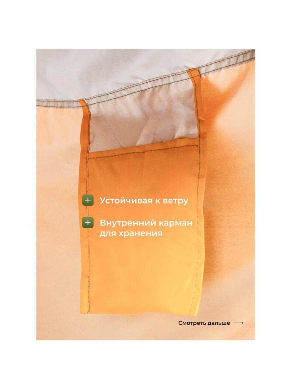 Однослойная конструкция палатки обеспечивает легкость и простоту установки, не требуя специальных навыков или инструментов. Вентиляционное окно способствует поддержанию свежего воздуха внутри, что особенно важно для длительного пребывания. Палатка не оснащена внутренней секцией и противомоскитной сеткой, что делает её максимально легкой и мобильной — идеальный вариант для быстрого развертывания на дачном участке, пляже или во время выездных мероприятий.