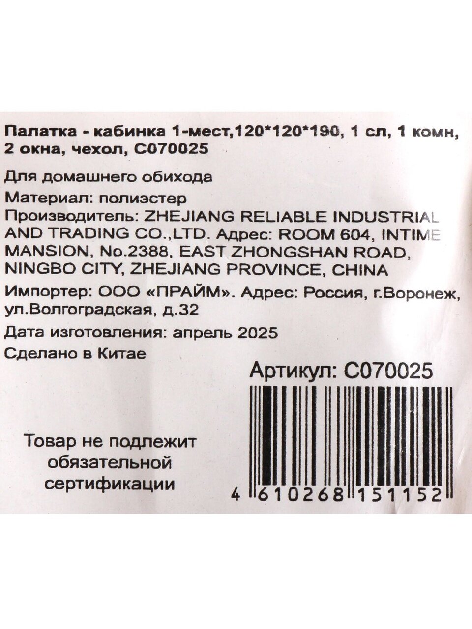 Вы можете приобрести «Палатка - кабинка 1-мест, 120х120х190 см, 1 слой, 1 комн, 1 вентиляционное окно, чехол, C070025» и другие товары в нашем интернет-магазине в Железногорске по низким ценам и с бесплатным самовывозом.
