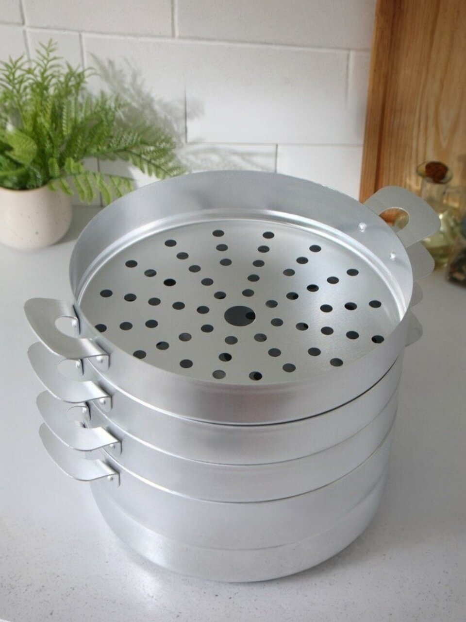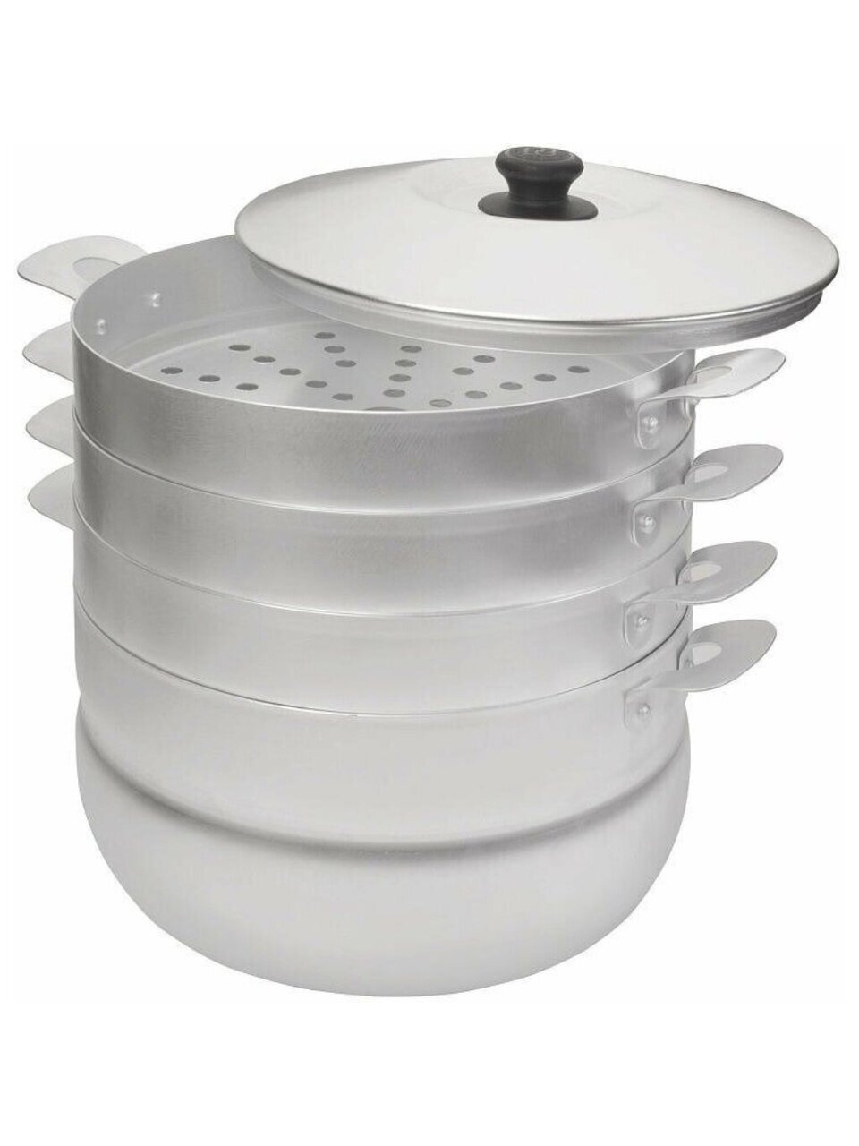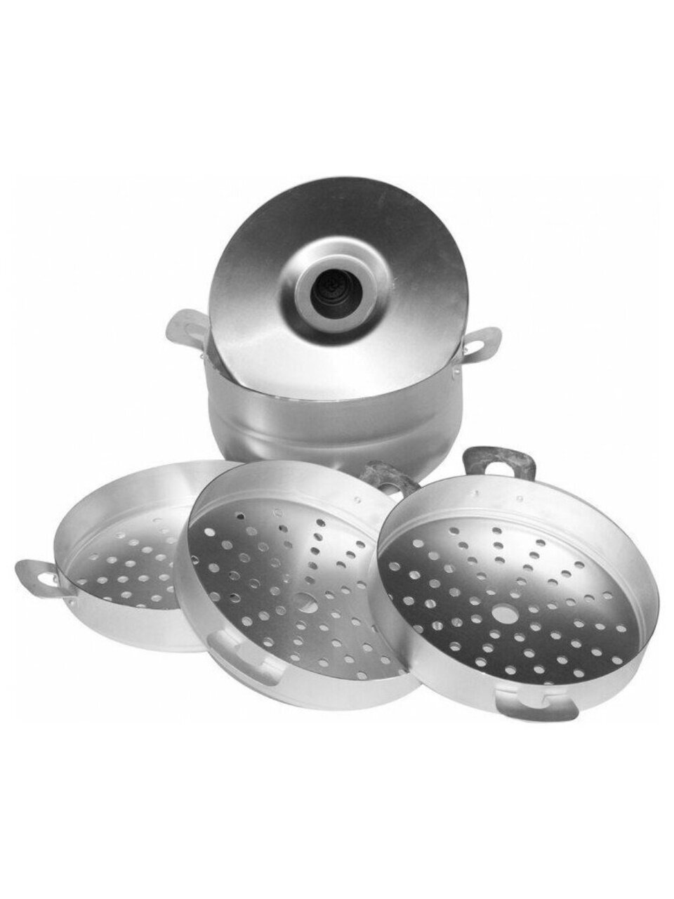 Алюминиевый манты-казан с сетками – удобная, практичная и долговечная посуда для приготовления блюд на пару. Конструкция мантоварки состоит из корпуса и комплекта сеток для размещения продуктов на разных уровнях. Отверстия в дне сеток позволяют распределить пар по всему объему мантоварки, благодаря чему еда приготовится одновременно. Количество сеток можно регулировать: добавлять или уменьшать.